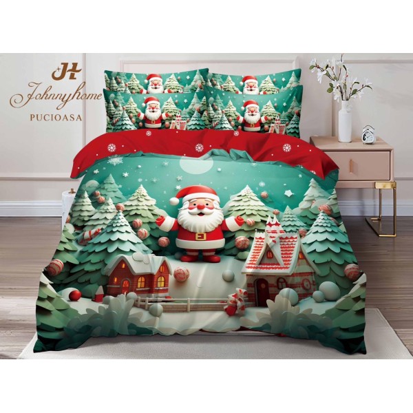 Lenjerie de pat Crăciun din bumbac 100% finet - Confort și Eleganță Festivă