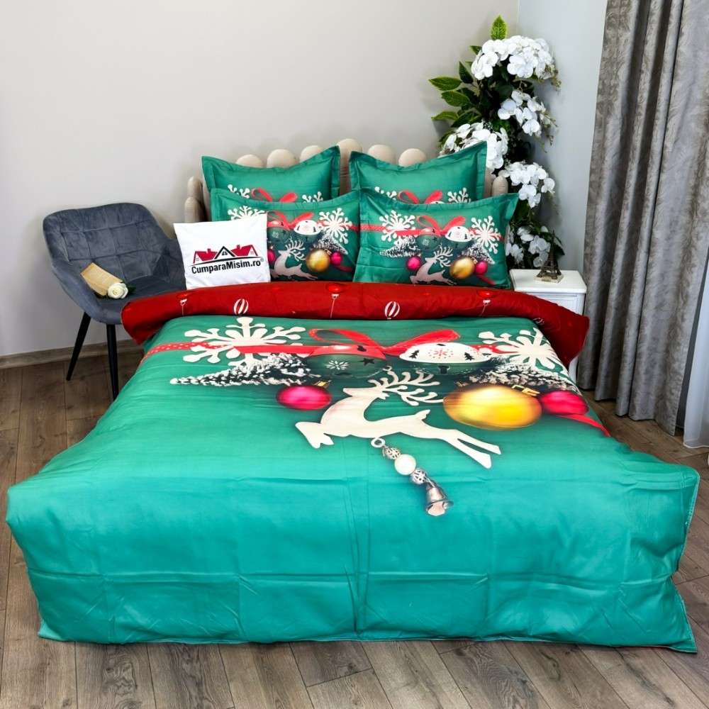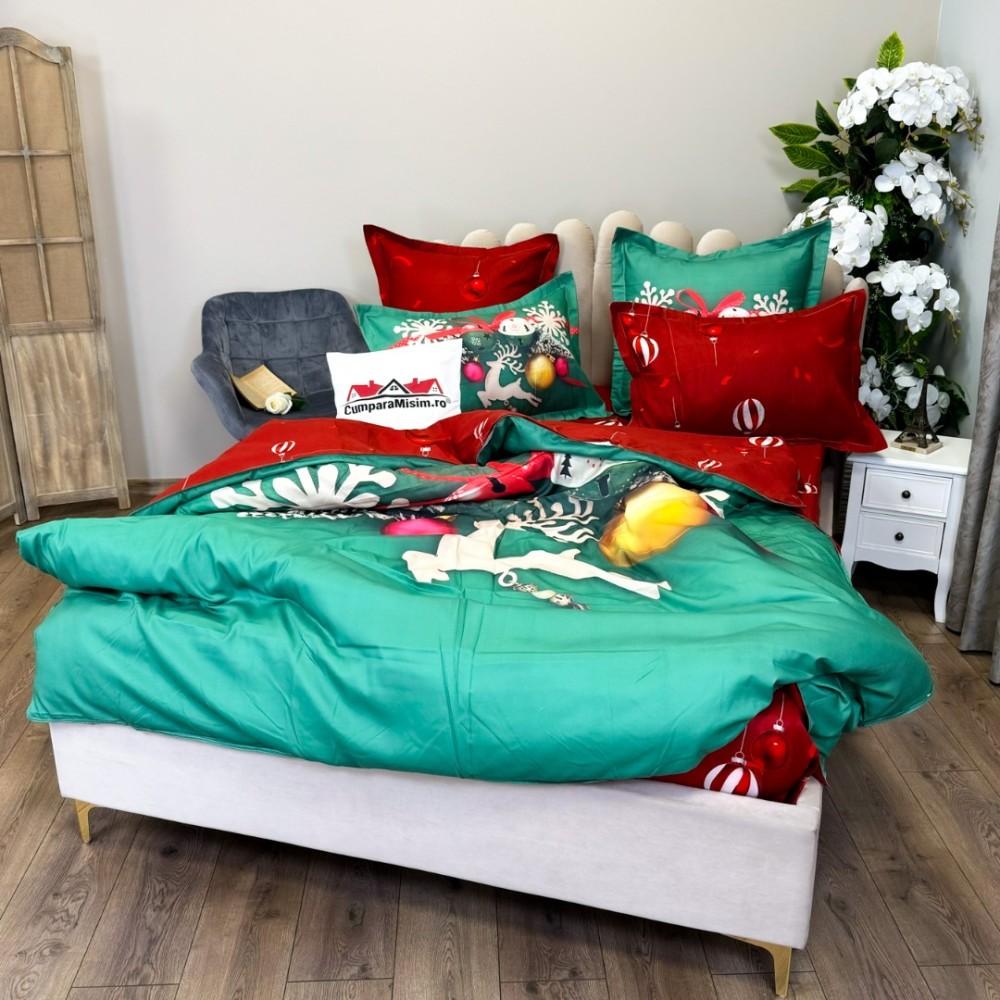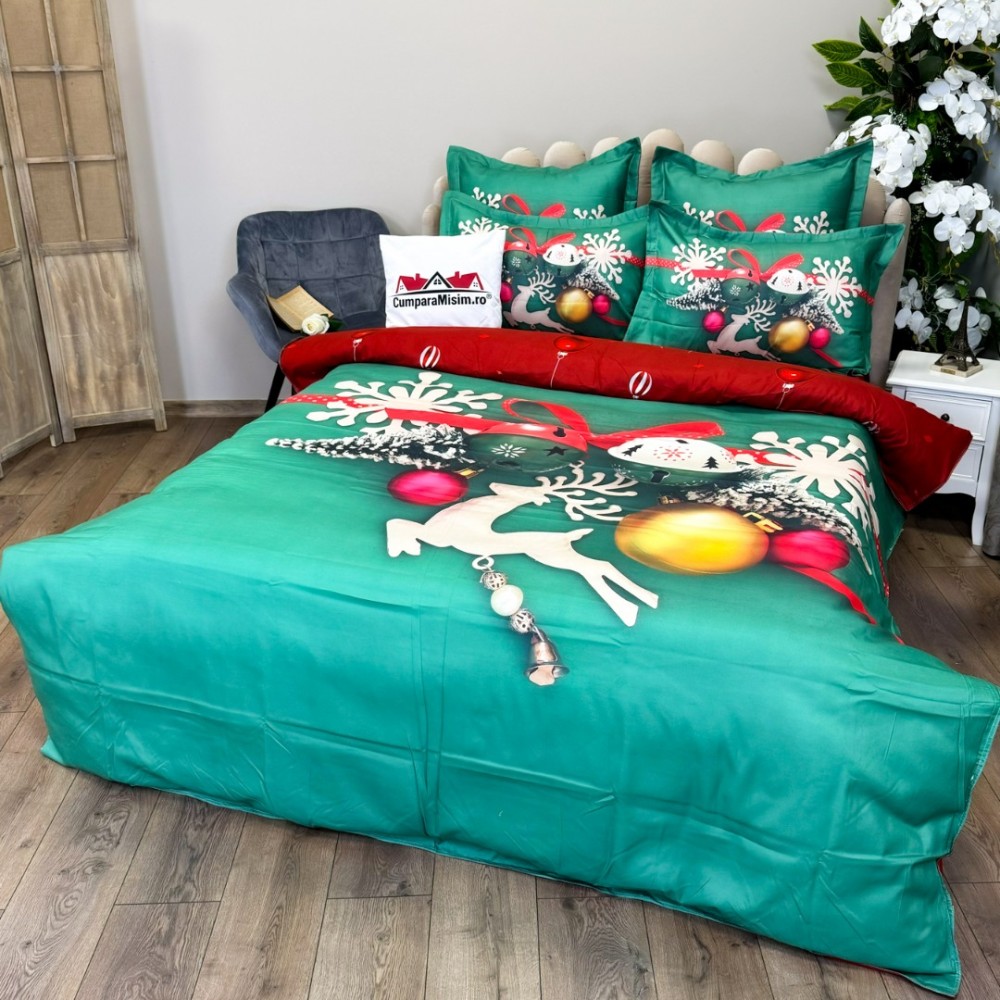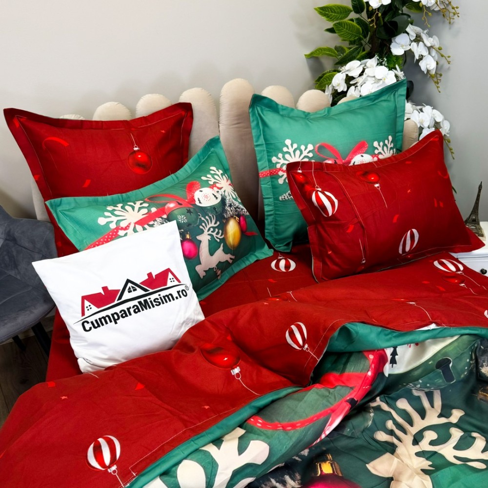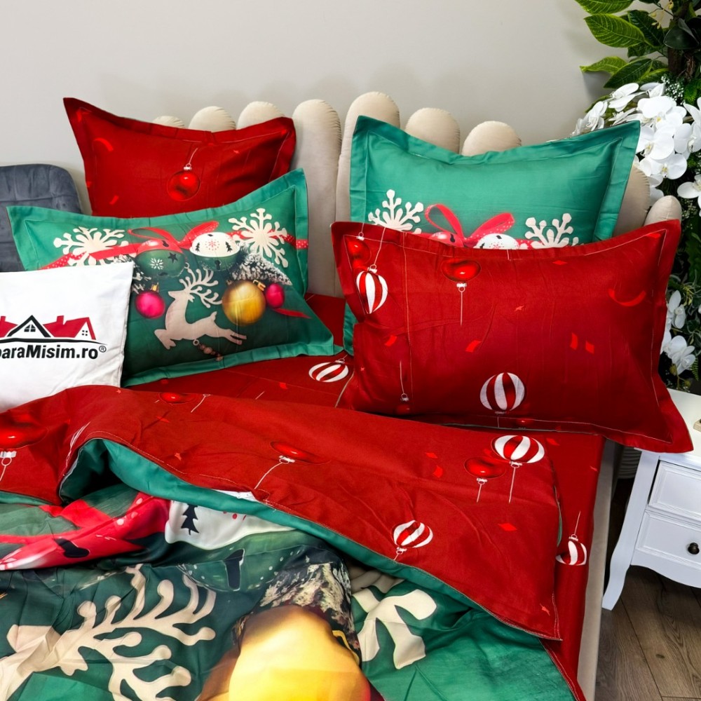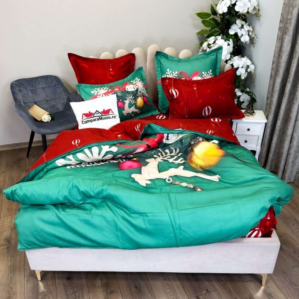 Lenjerie de pat Crăciun din bumbac 100% finet - Confort și Eleganță Festivă