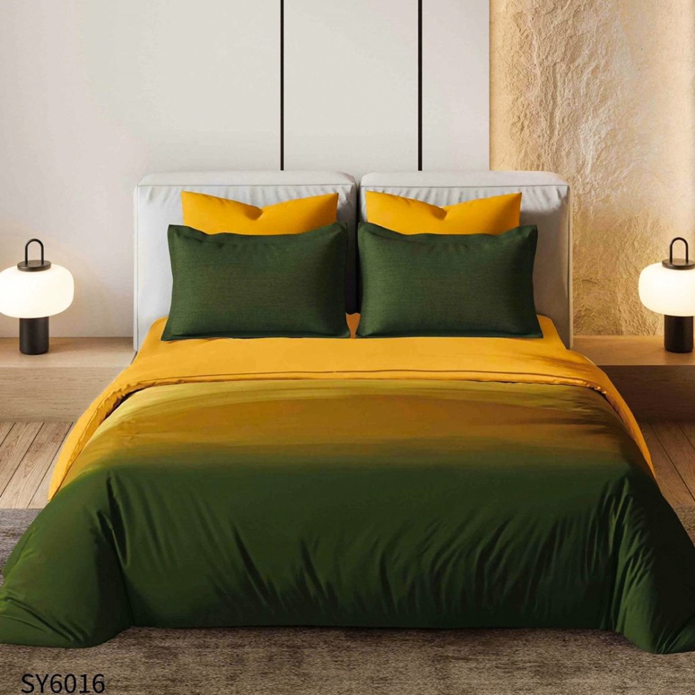 Lenjerie pat dublu, FINET, Imprimeu Digital, cu ELASTIC, Galben, Verde, Degrade, Primavara Casa, cod produs: PRM-FD-SY6016