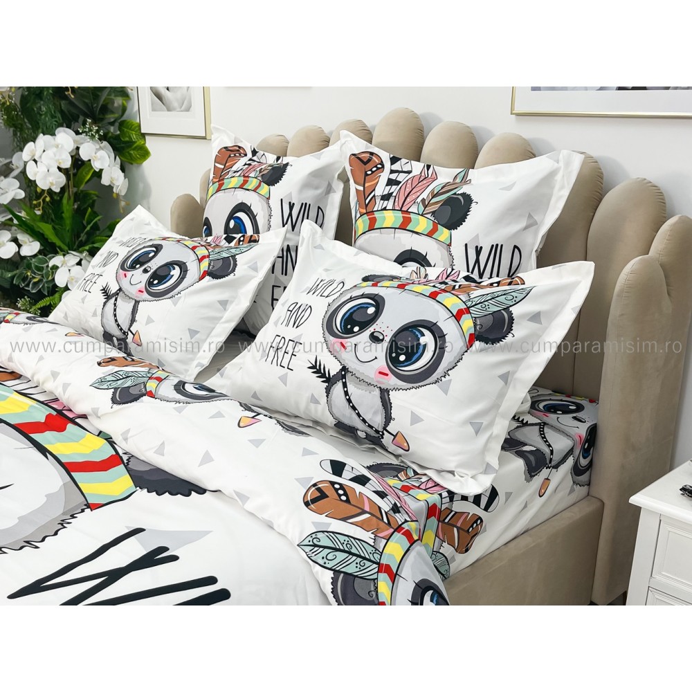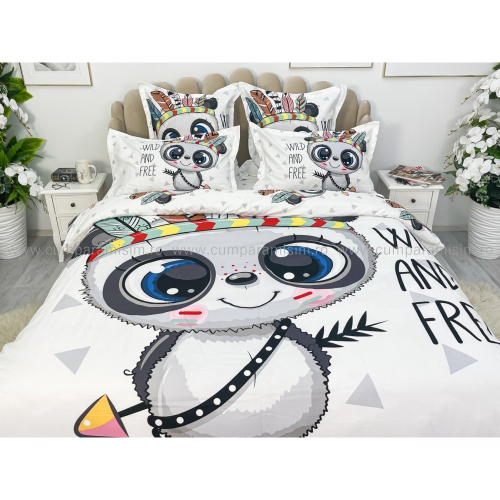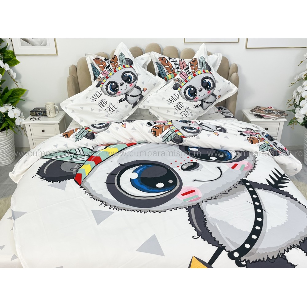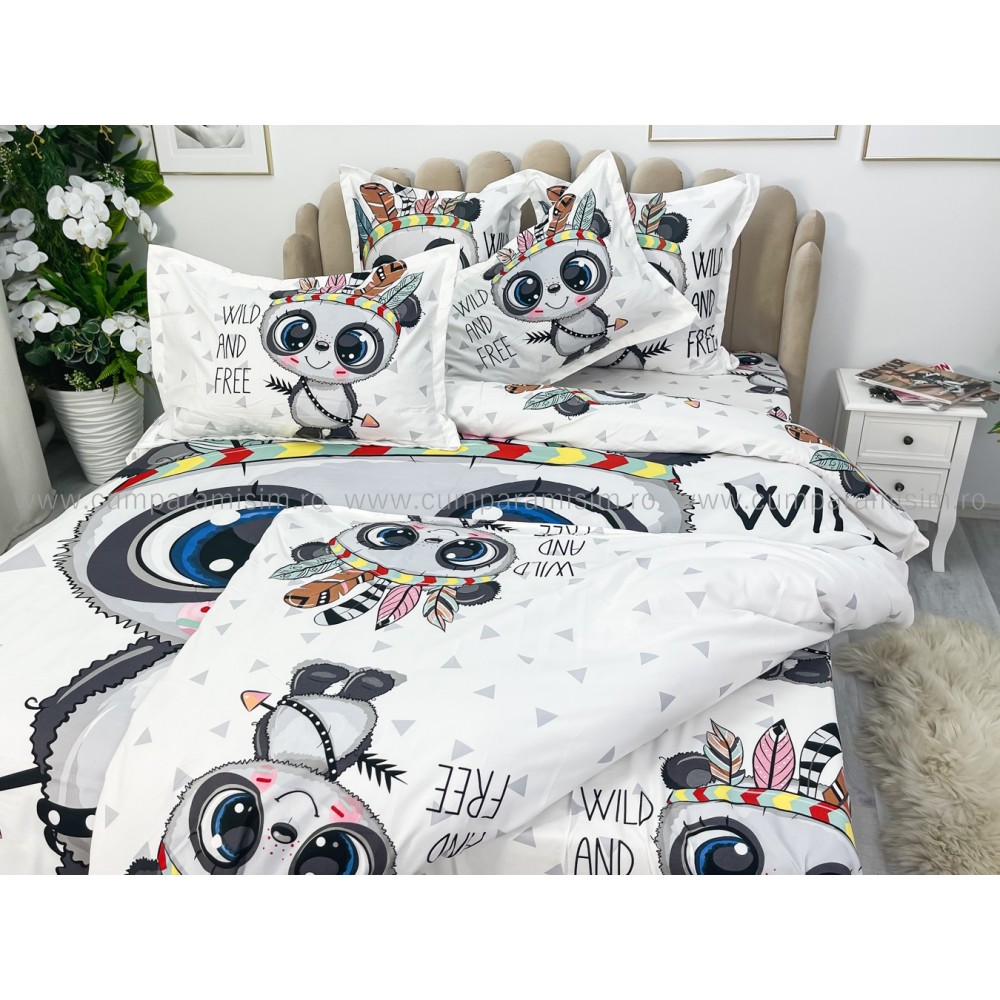 Lenjerie pat dublu, FINET, Imprimeu Digital - Identic cu poza, 6 piese, Jojo Home, Alb-Multicolor, ursulet, cod produs: JOF530