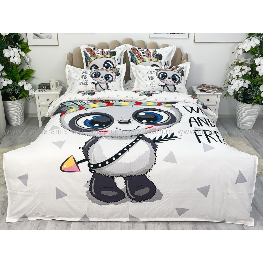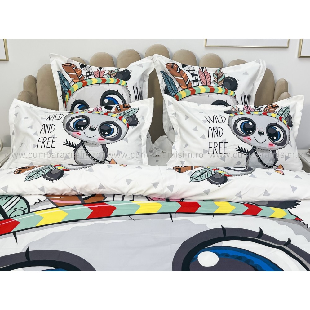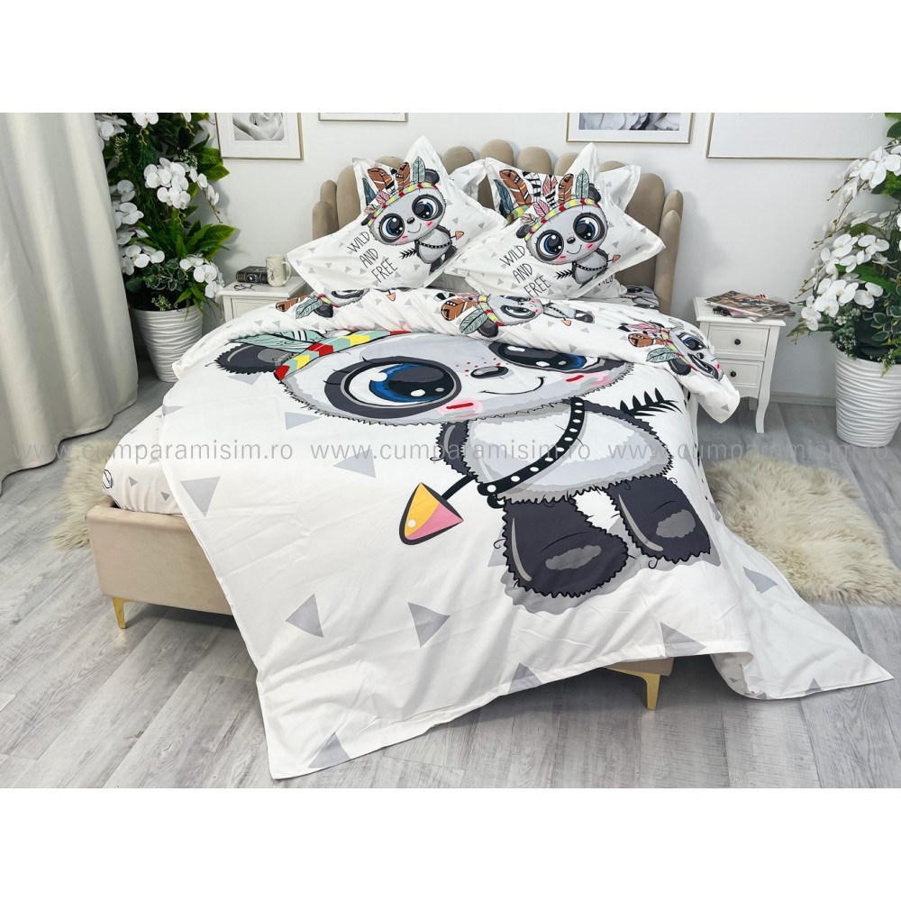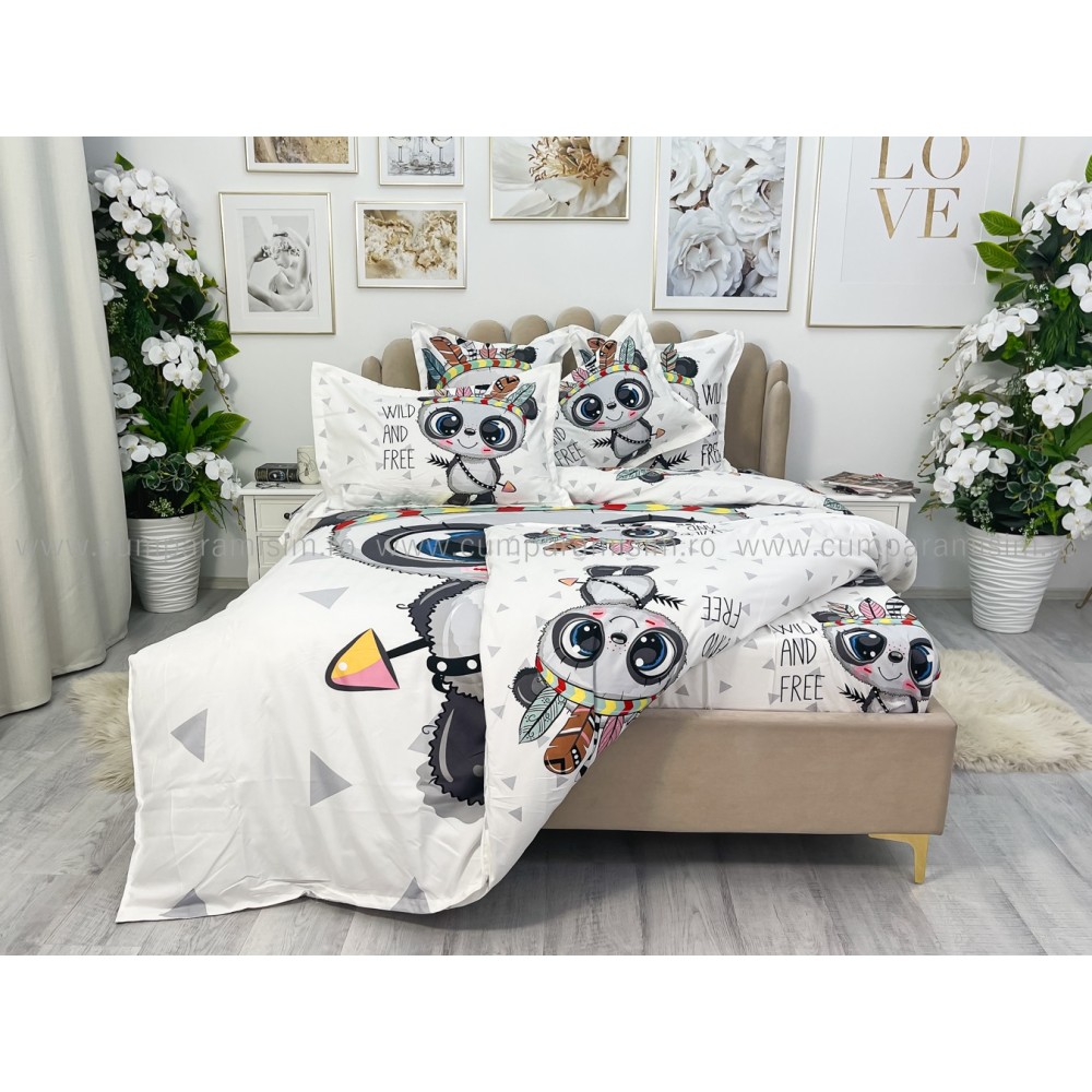 Lenjerie pat dublu, FINET, Imprimeu Digital - Identic cu poza, 6 piese, Jojo Home, Alb-Multicolor, ursulet, cod produs: JOF530
