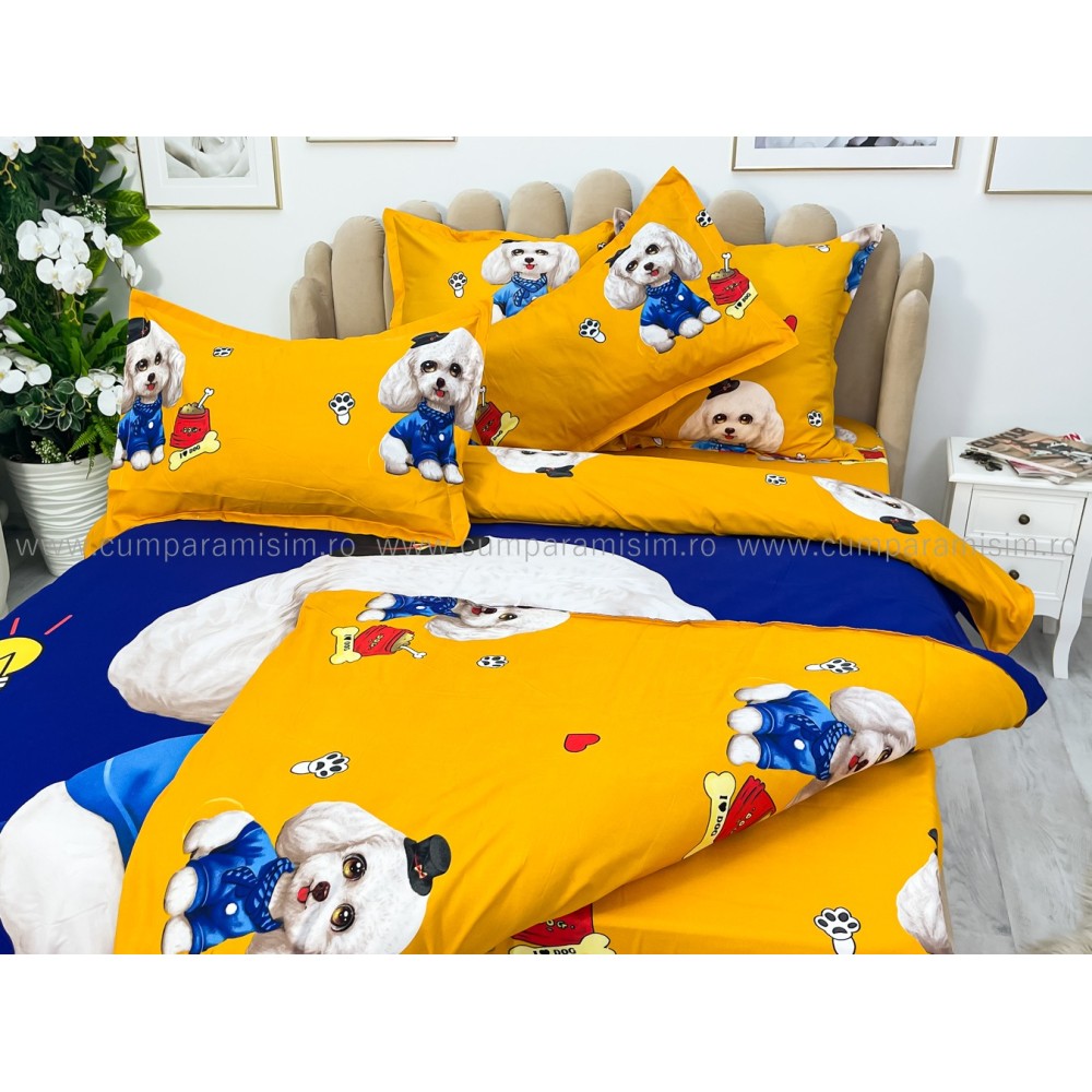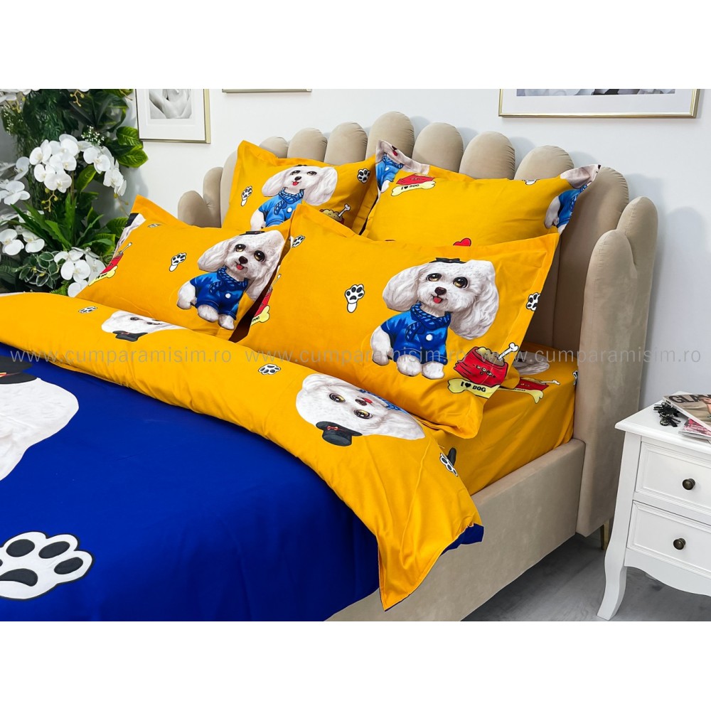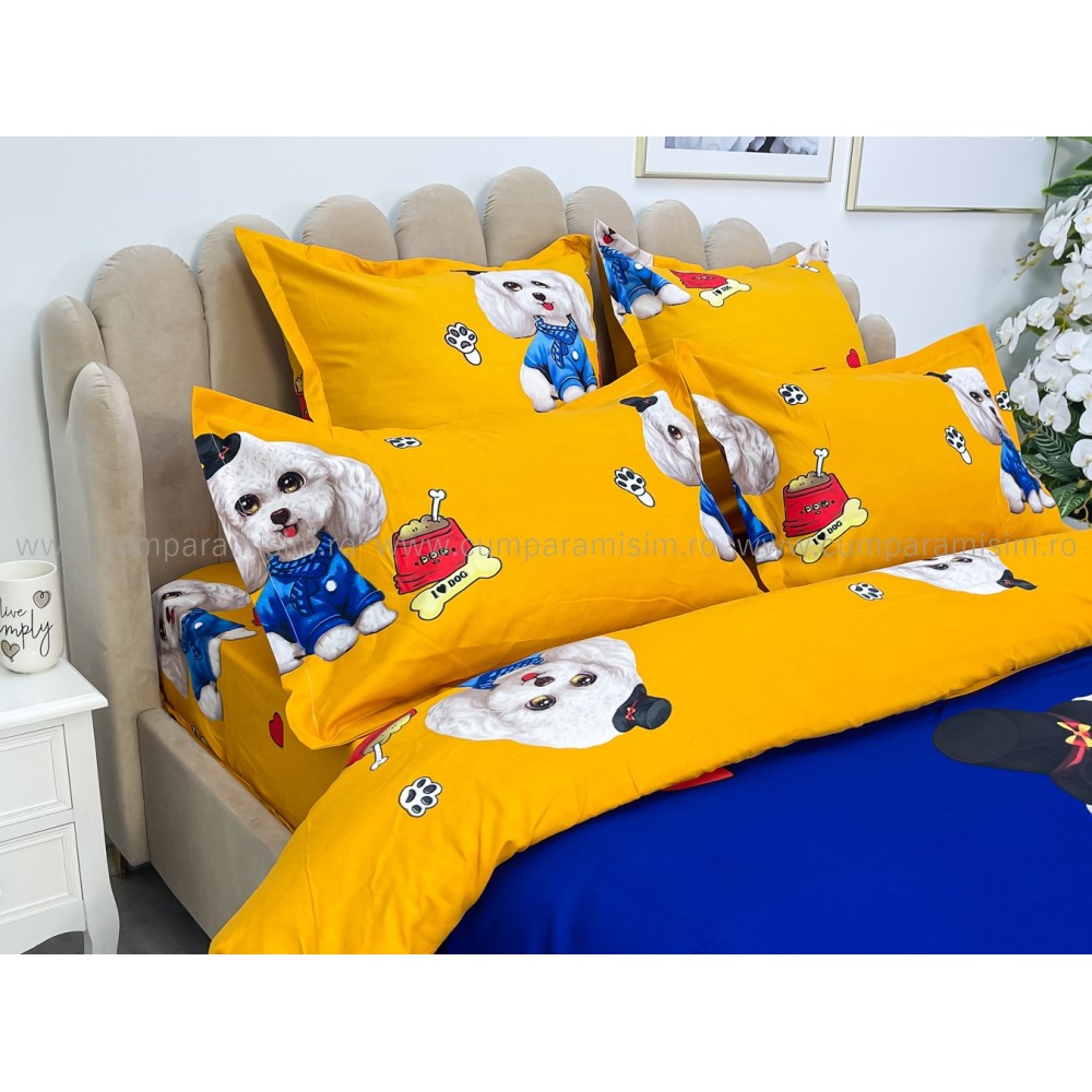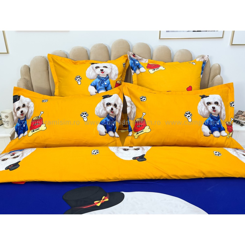 Lenjerie pat dublu, FINET, Imprimeu Digital - Identic cu poza, 6 piese, Jojo Home, Galben-Multicolor, catel, cod produs: JOF504