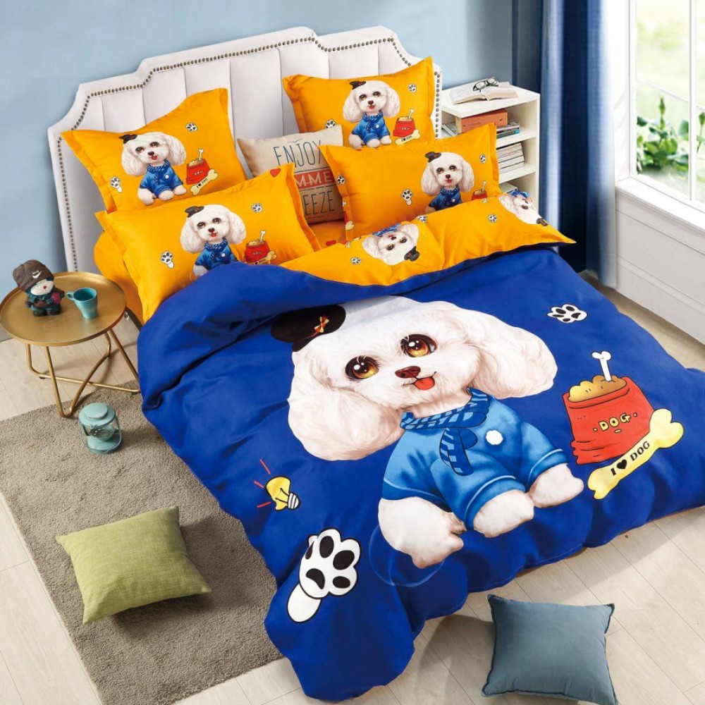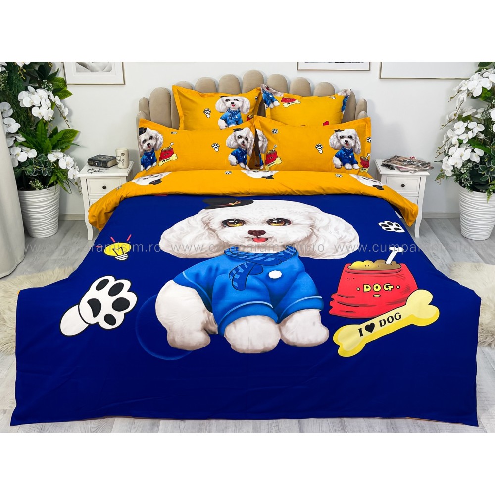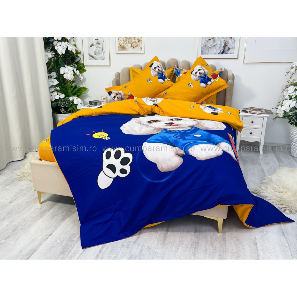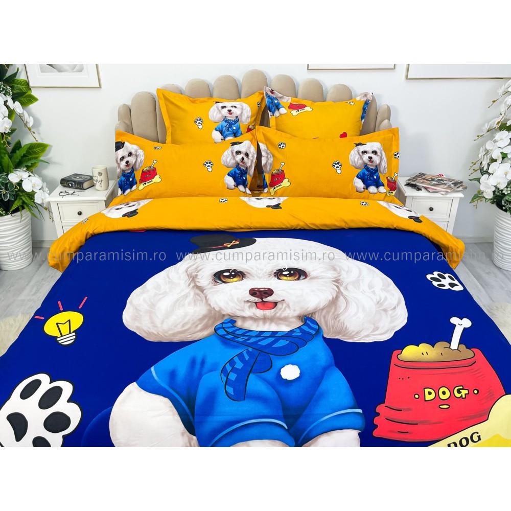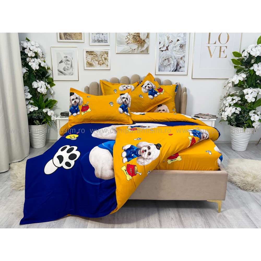 Lenjerie pat dublu, FINET, Imprimeu Digital - Identic cu poza, 6 piese, Jojo Home, Galben-Multicolor, catel, cod produs: JOF504