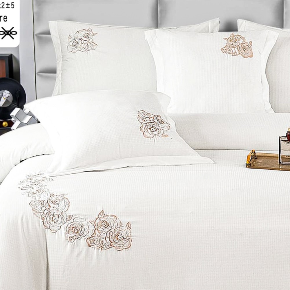 Descoperă echilibrul perfect între finețea naturală a bumbacului și rafinamentul detaliilor brodate cu setul de lenjerie de pat premium, creat pentru a oferi confort superior și un aspect elegant dormitorului tău. Fabricată din bumbac neted de înaltă calitate, această lenjerie impresionează prin textura sa delicată și broderia atent realizată, oferind o notă de lux și sofisticare.