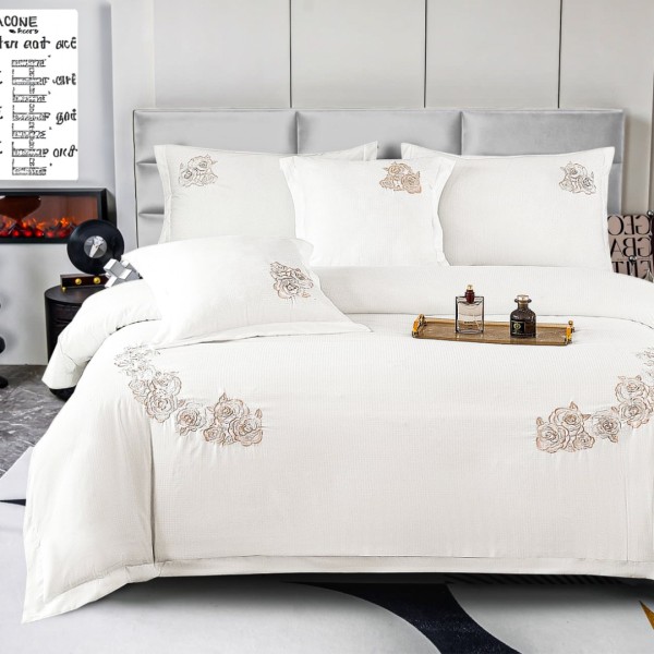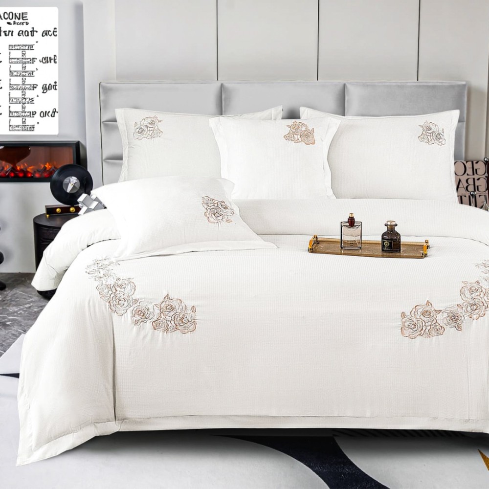 Lenjerie de Pat PREMIUM din Bumbac Neted Fin cu Broderie Elegantă – Confort și Rafinament pentru un Somn Perfect
