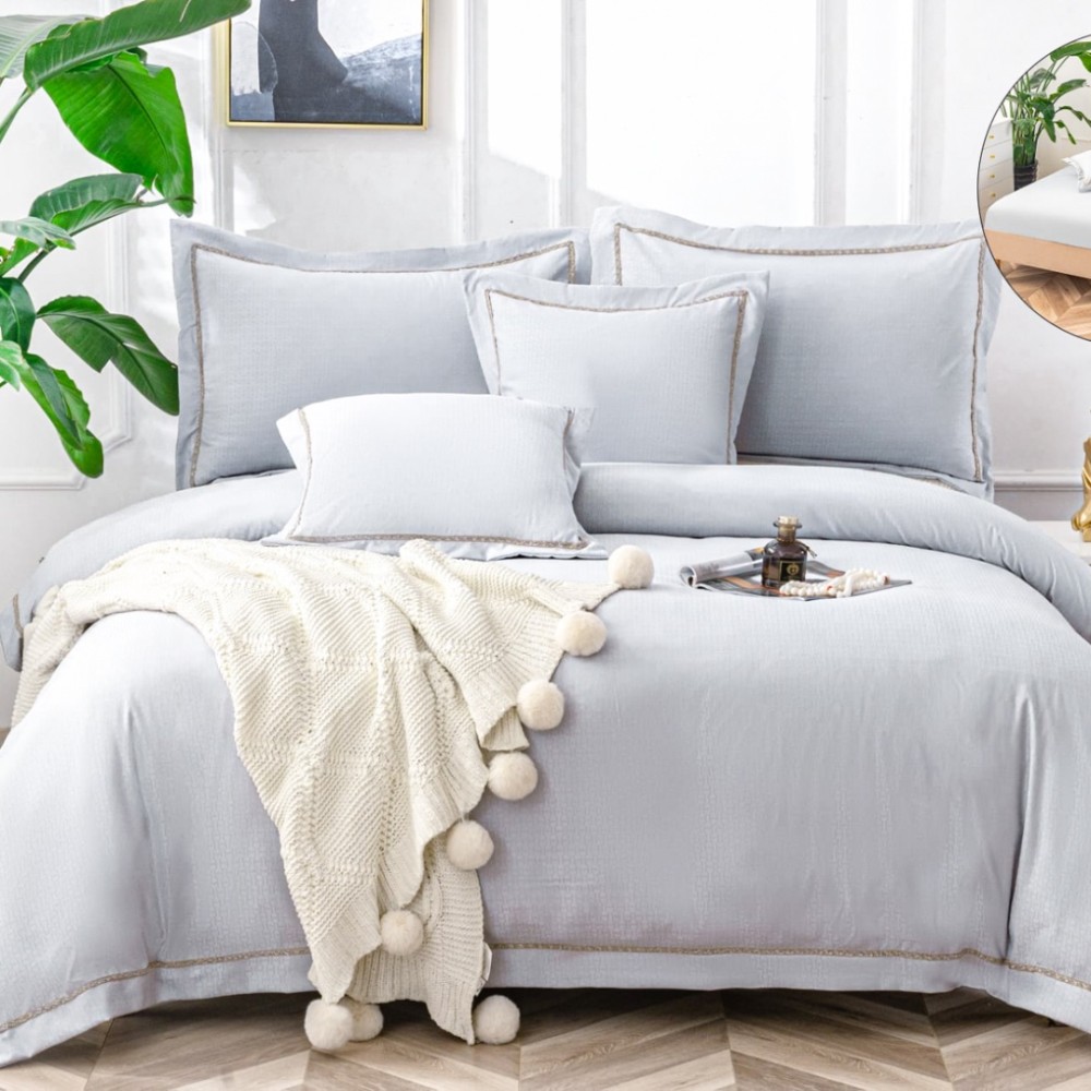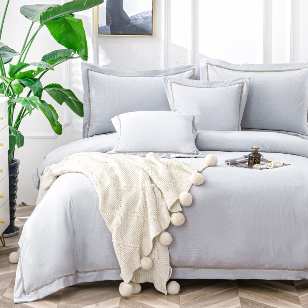 Transformă-ți dormitorul într-un sanctuar al relaxării cu lenjeria noastră de pat luxury, realizată din bumbac 100% neted, cu o textură fină și plăcută la atingere. Accesorizată cu o bordură elegantă din dantelă aplicată manual, această lenjerie este definită de detalii sofisticate și o calitate excepțională.