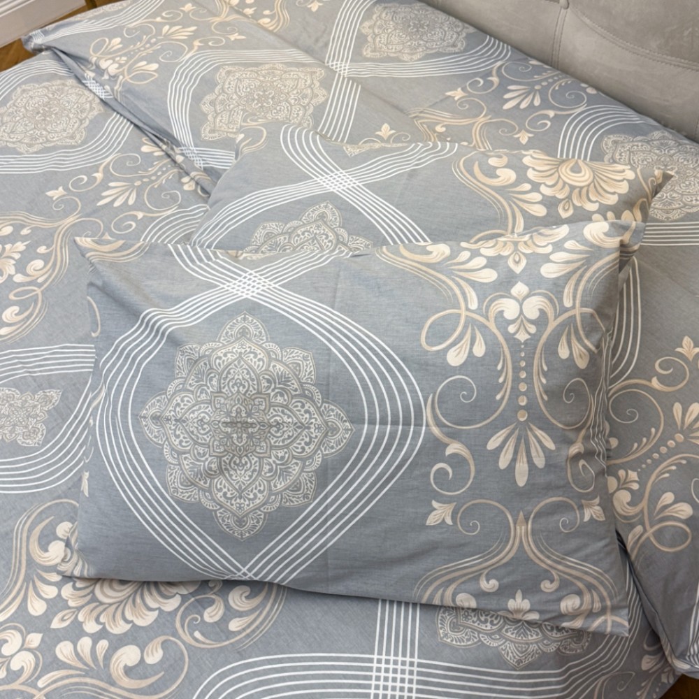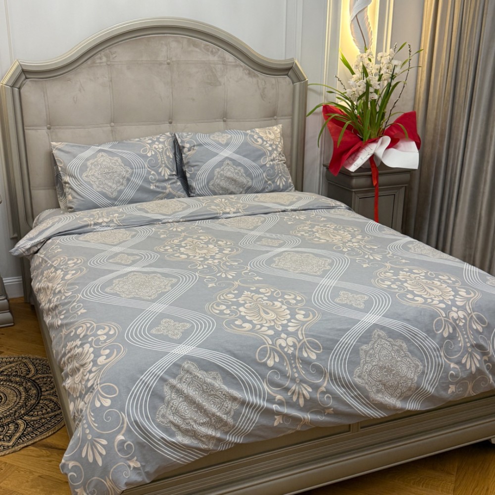 Lenjerie Pat Dublu, Bumbac Ranforce, 4 piese, Atelier Cumparamisim - Lux Suprem, Rafinament Desăvârșit, Confort Regal, Gri, Bej, Model Elegant, cod produs: CMP-RF15