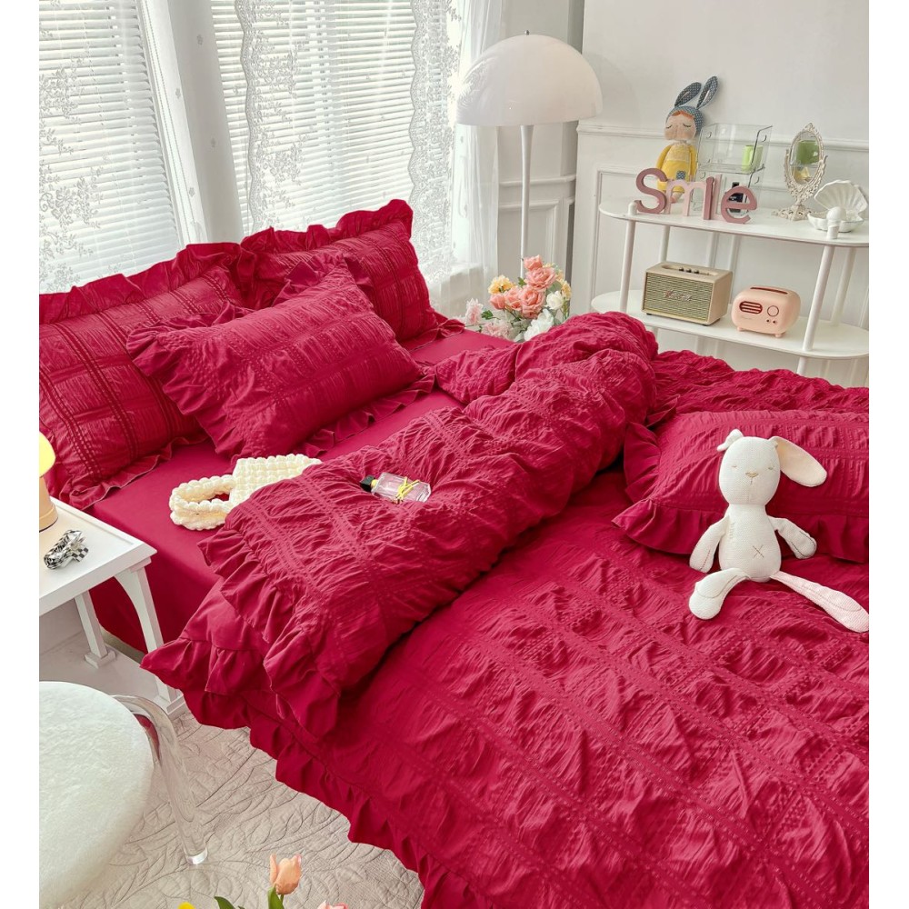 Lenjerie pat dublu, Soft Touch CREPONAT DELUXE, 6 piese, Jojo Home, Rosu, cod produs: JOR20