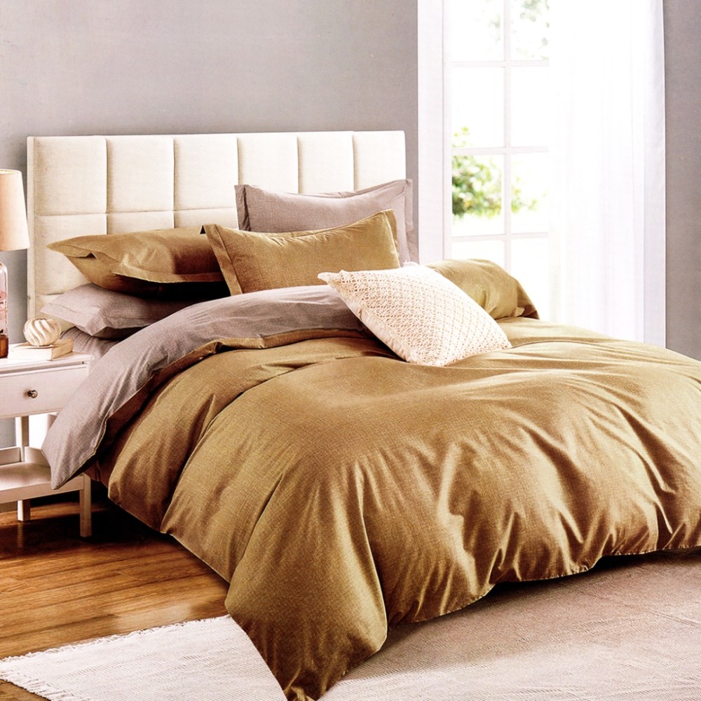 Lenjerie pat dublu, bumbac satinat, cu doua feţe, 4 piese, Bej, Gri, Uni Bicolor, Casa Creativ Elegant Pucioasa, cod produs: BCC-LBS68