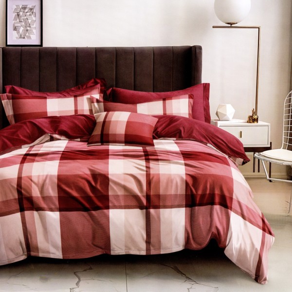 Lenjerie pat dublu, bumbac satinat, cu doua feţe, 4 piese, Grena, Alb, Carouri, Casa Creativ Elegant Pucioasa, cod produs: BCC-LBS93