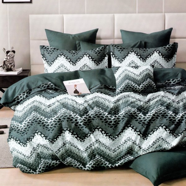 Lenjerie pat dublu, bumbac satinat, cu doua feţe, 4 piese, Petrol, Alb, Zig-Zag, Casa Creativ Elegant Pucioasa, cod produs: BCC-LBS88