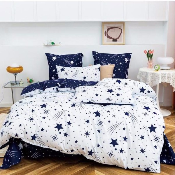 Lenjerie pat dublu, Finet Soft, cu ELASTIC, 4 PIESE, Alb, stelute, CumparaMisim, cod produs: YY-FSE-03