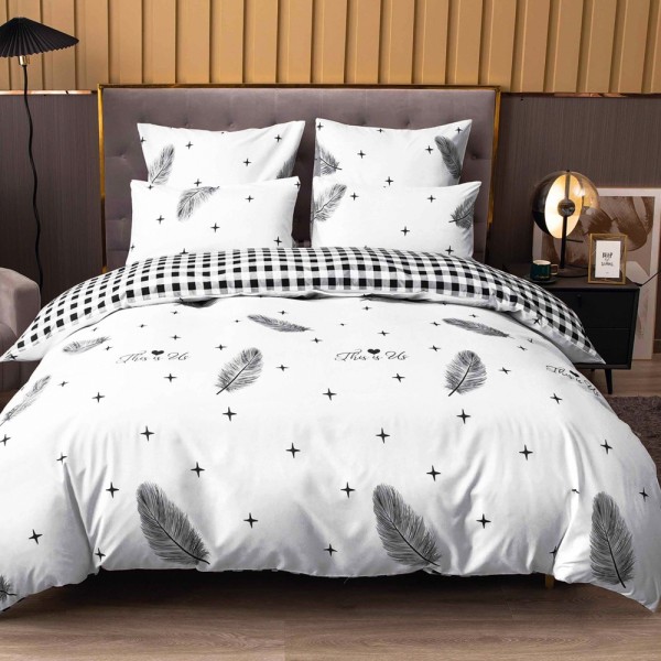 Lenjerie pat dublu, bumbac satinat, cu elastic, Alb, pene, Johny Home Pucioasa, cod produs: SPR-E-121
