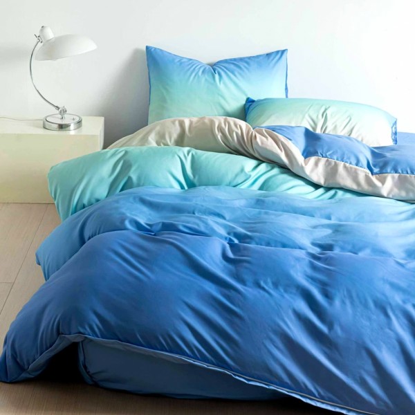 Lenjerie pat dublu, bumbac satinat, cu elastic, Albastru, degrade, Johny Home Pucioasa, cod produs: SPR-E-134