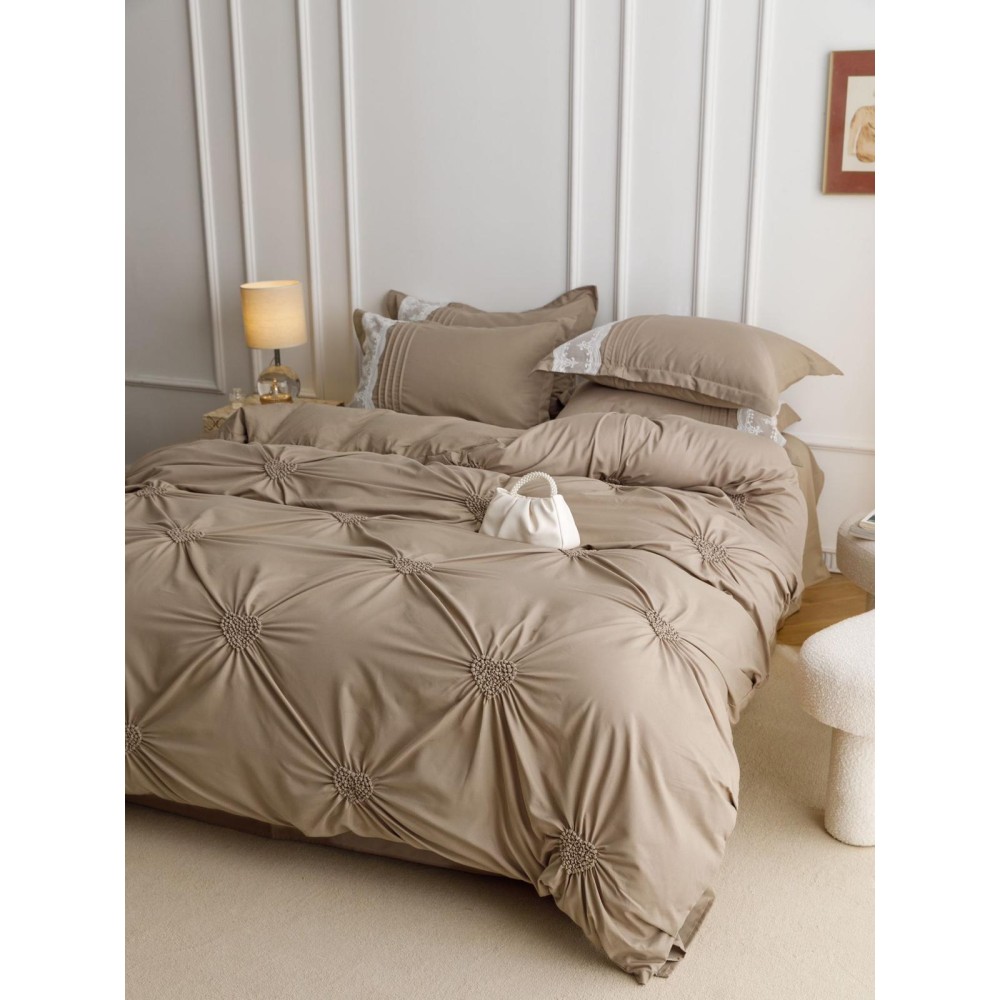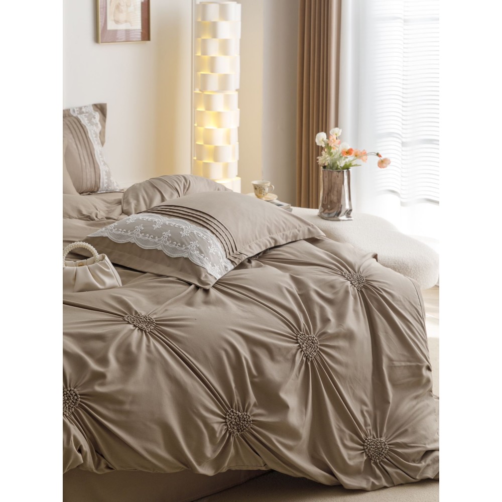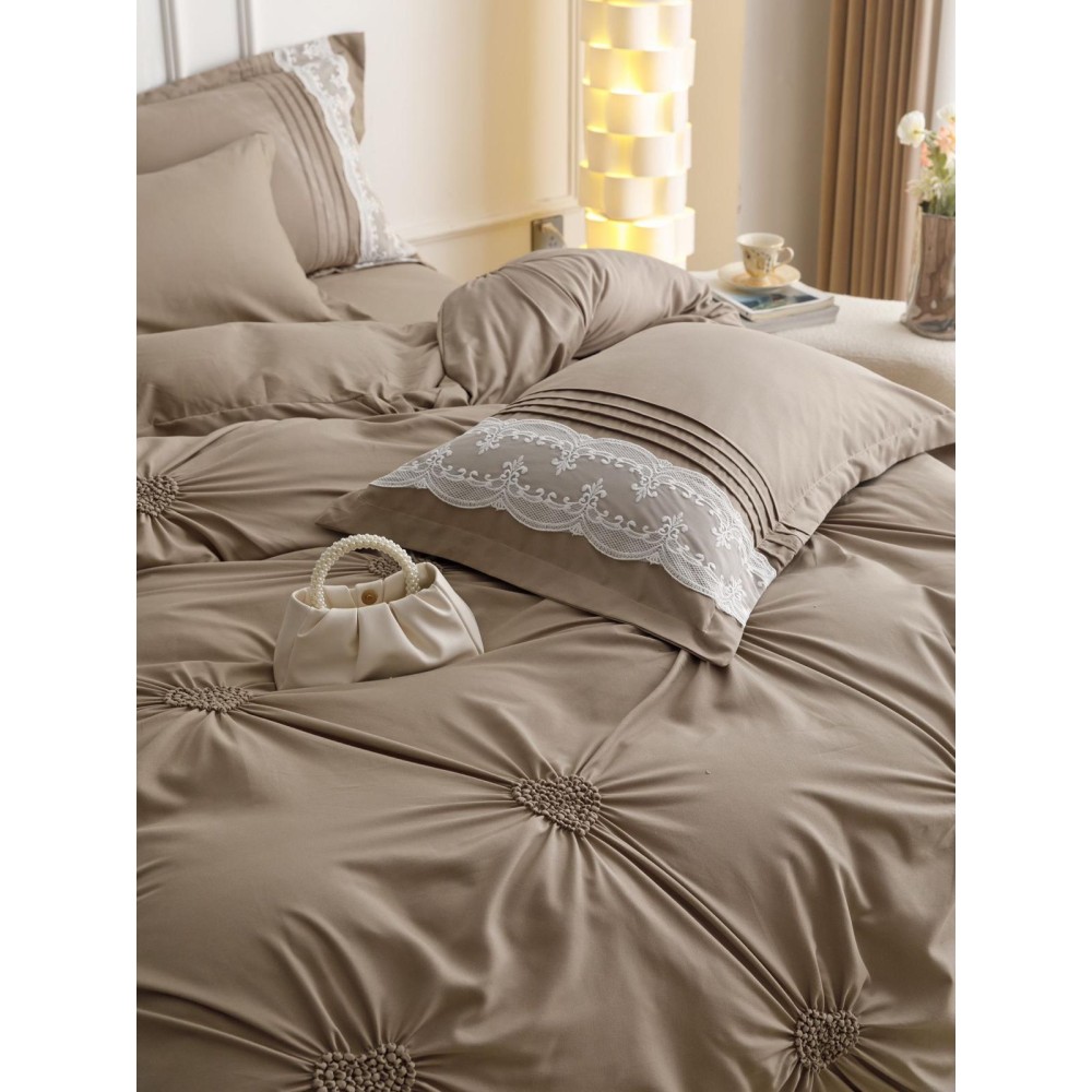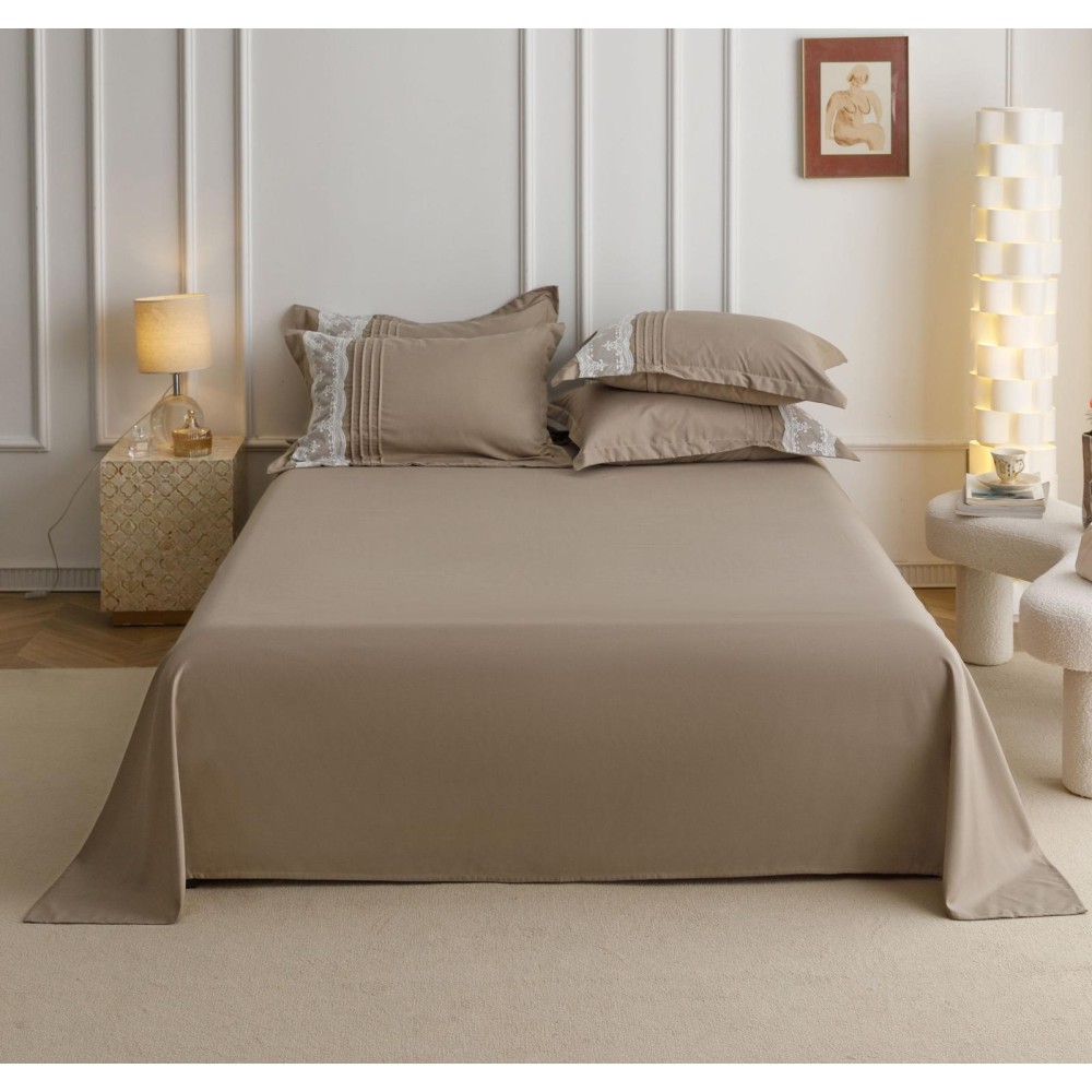 Lenjerie pat dublu, Soft Touch, 6 piese, cu PLIURI BRODATE, Jojo Home, Cappuccino, cod produs: JOP116