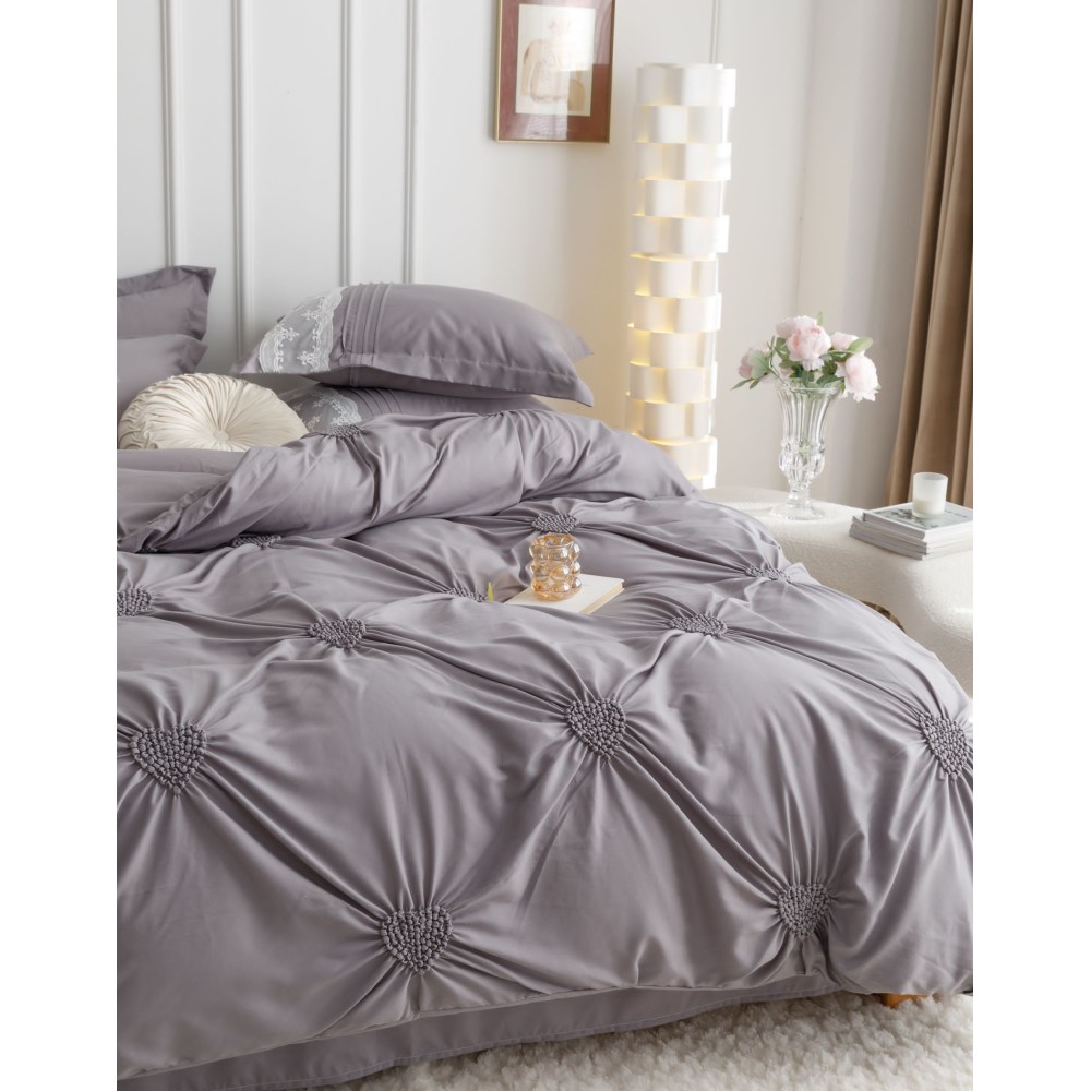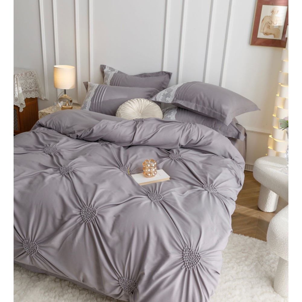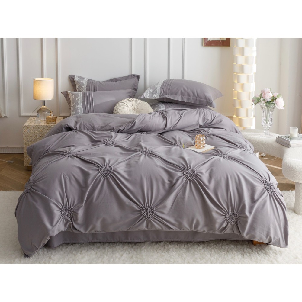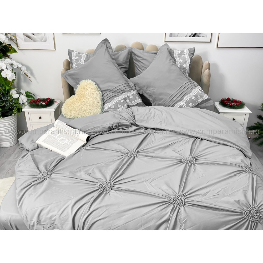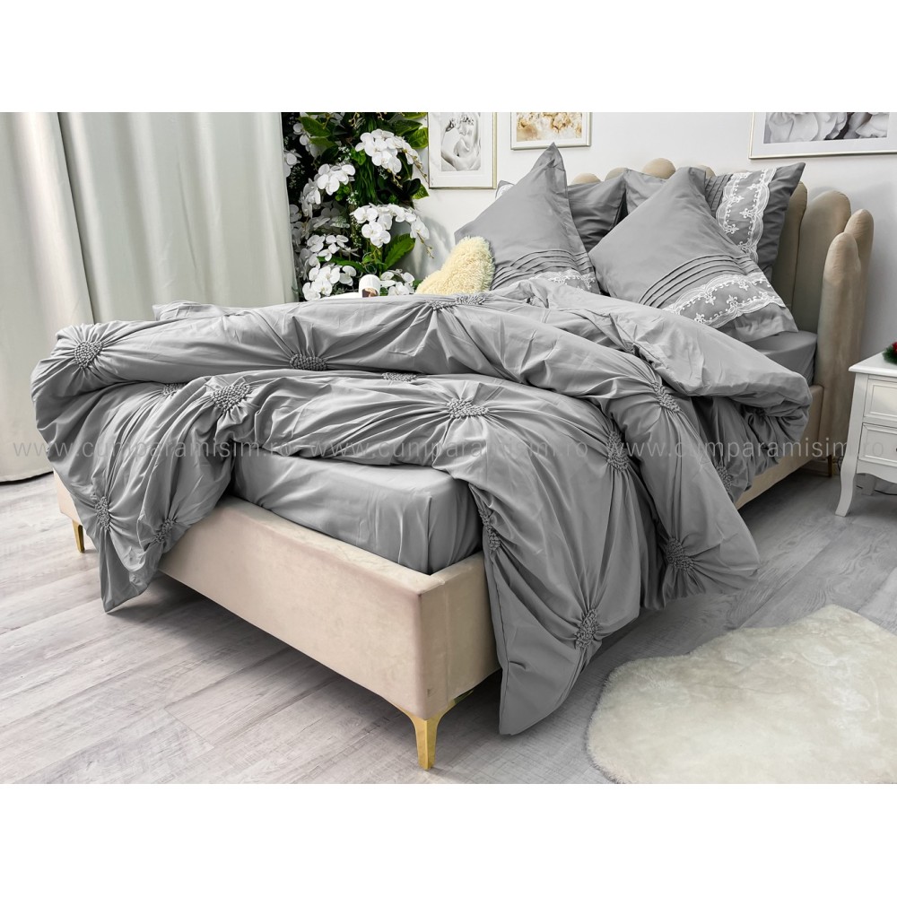 Lenjerie pat dublu, Soft Touch, 6 piese, cu PLIURI BRODATE, Jojo Home, Gri, cod produs: JOP106