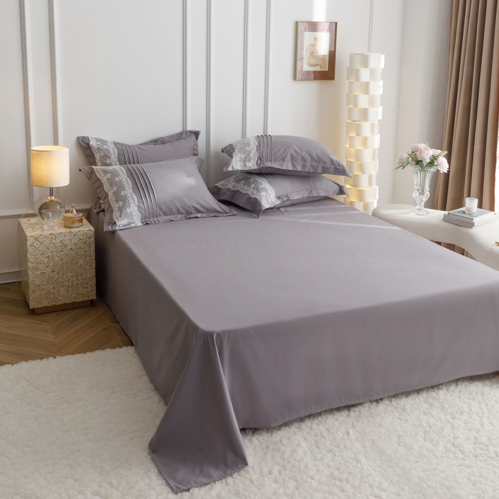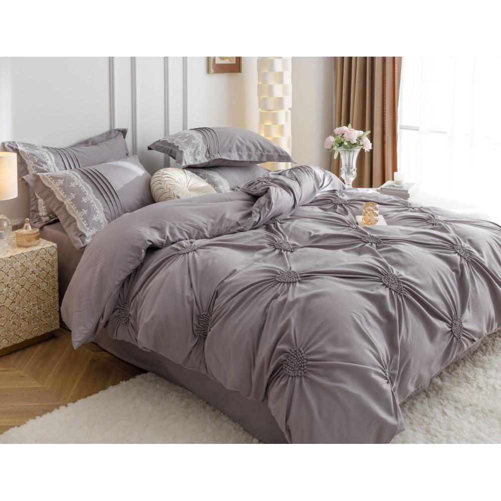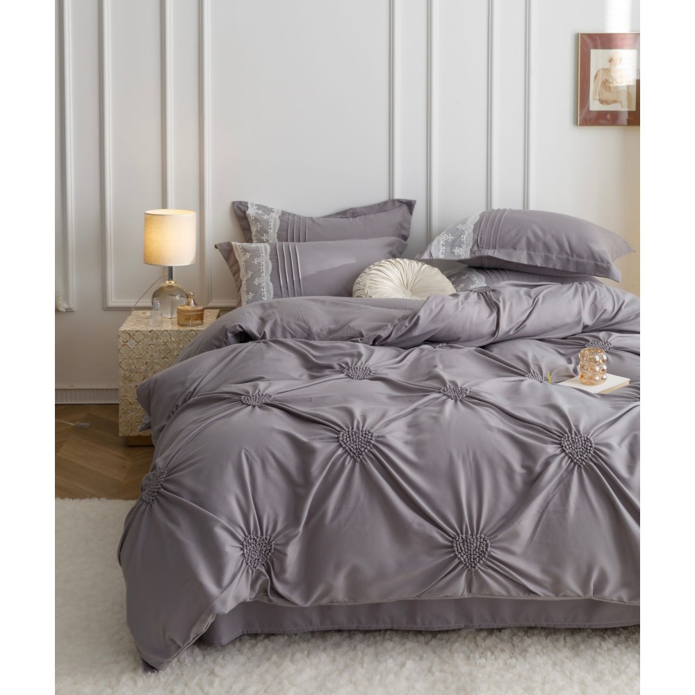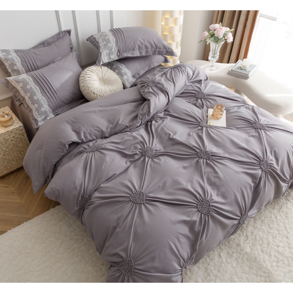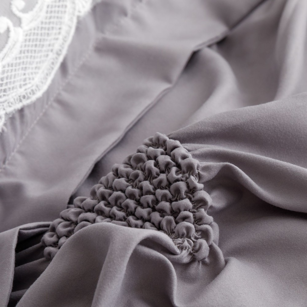 Lenjerie pat dublu, Soft Touch, 6 piese, cu PLIURI BRODATE, Jojo Home, Gri, cod produs: JOP106