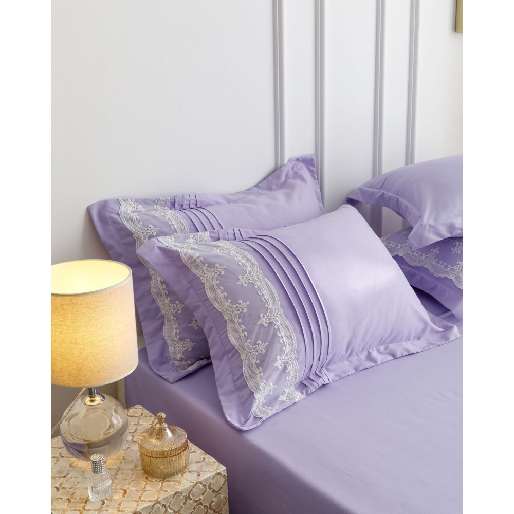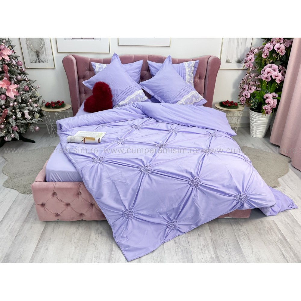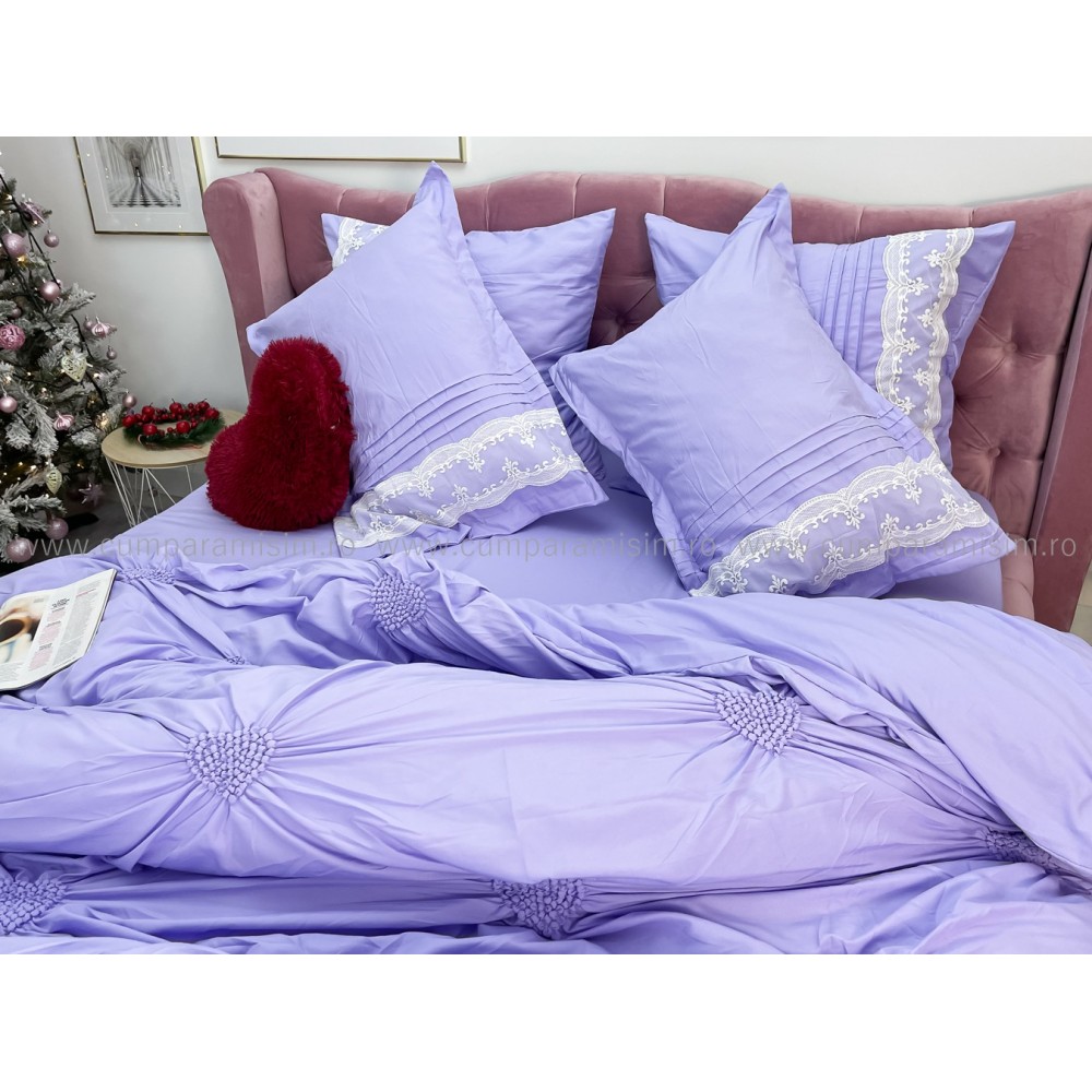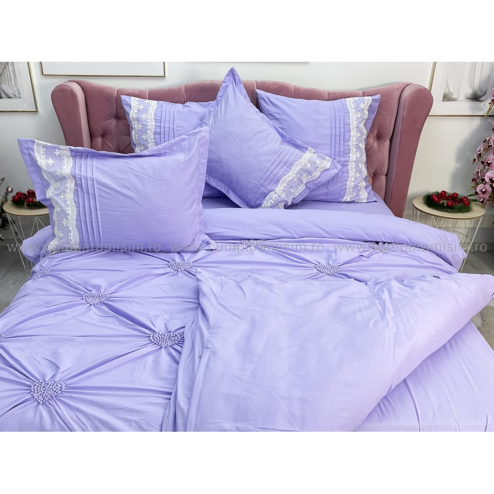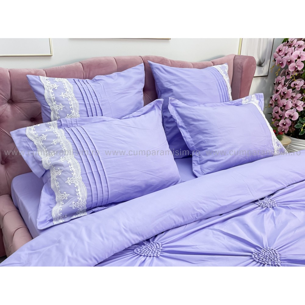 Lenjerie pat dublu, Soft Touch, 6 piese, cu PLIURI BRODATE, Jojo Home, Lila, cod produs: JOP107
