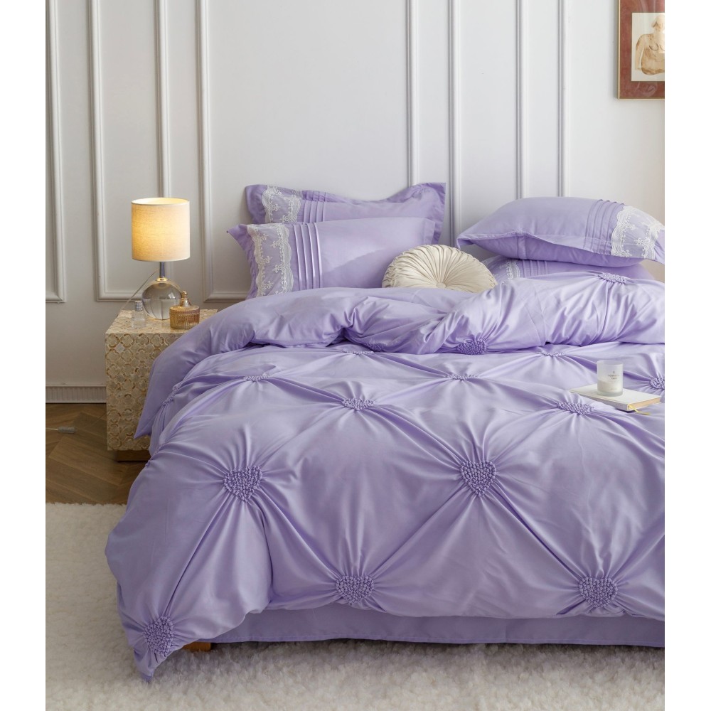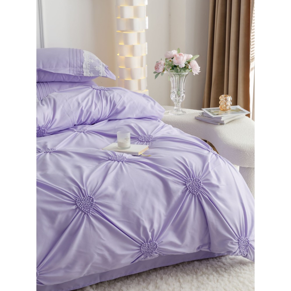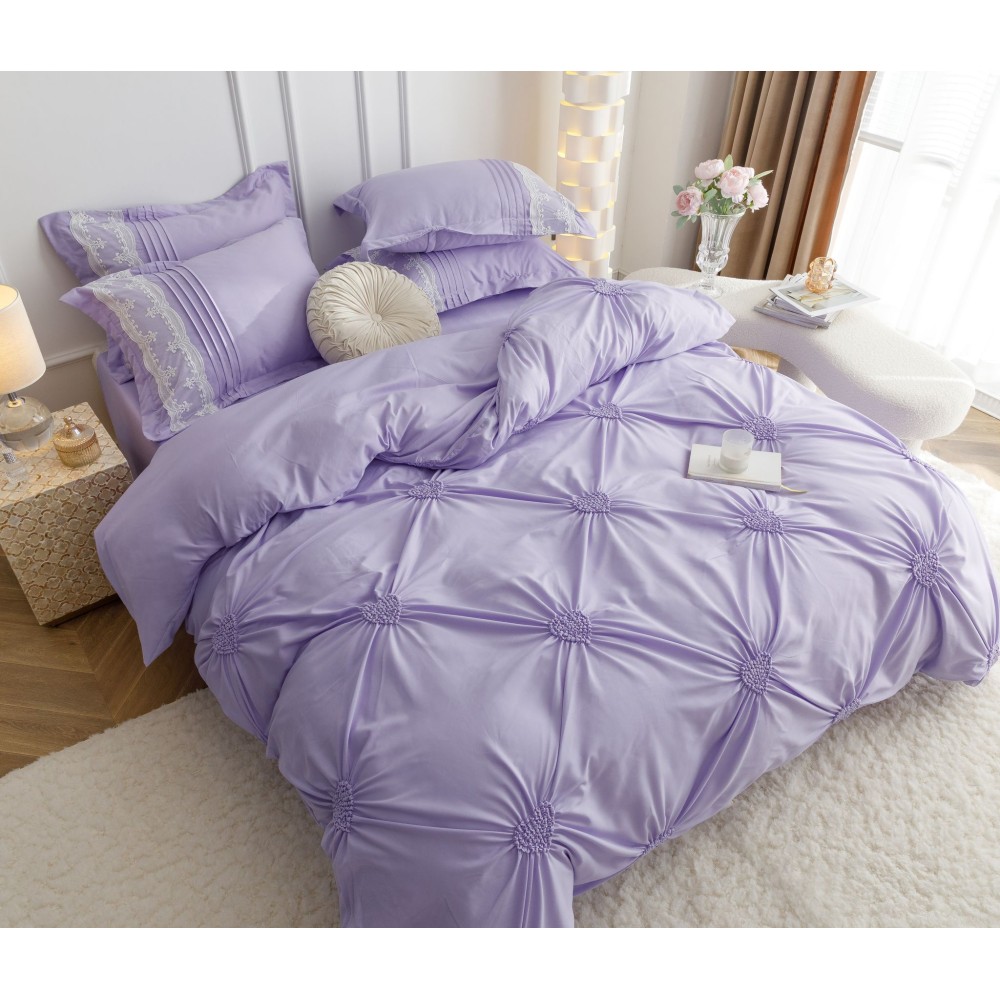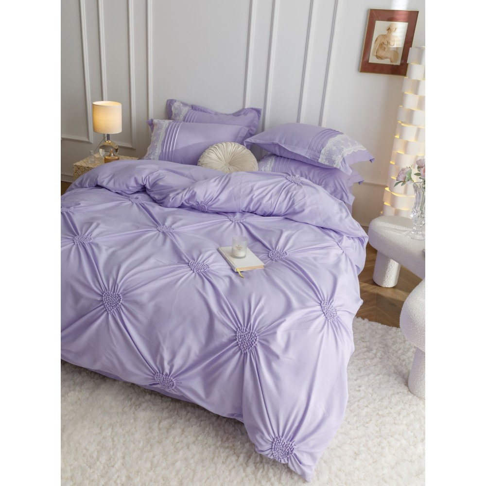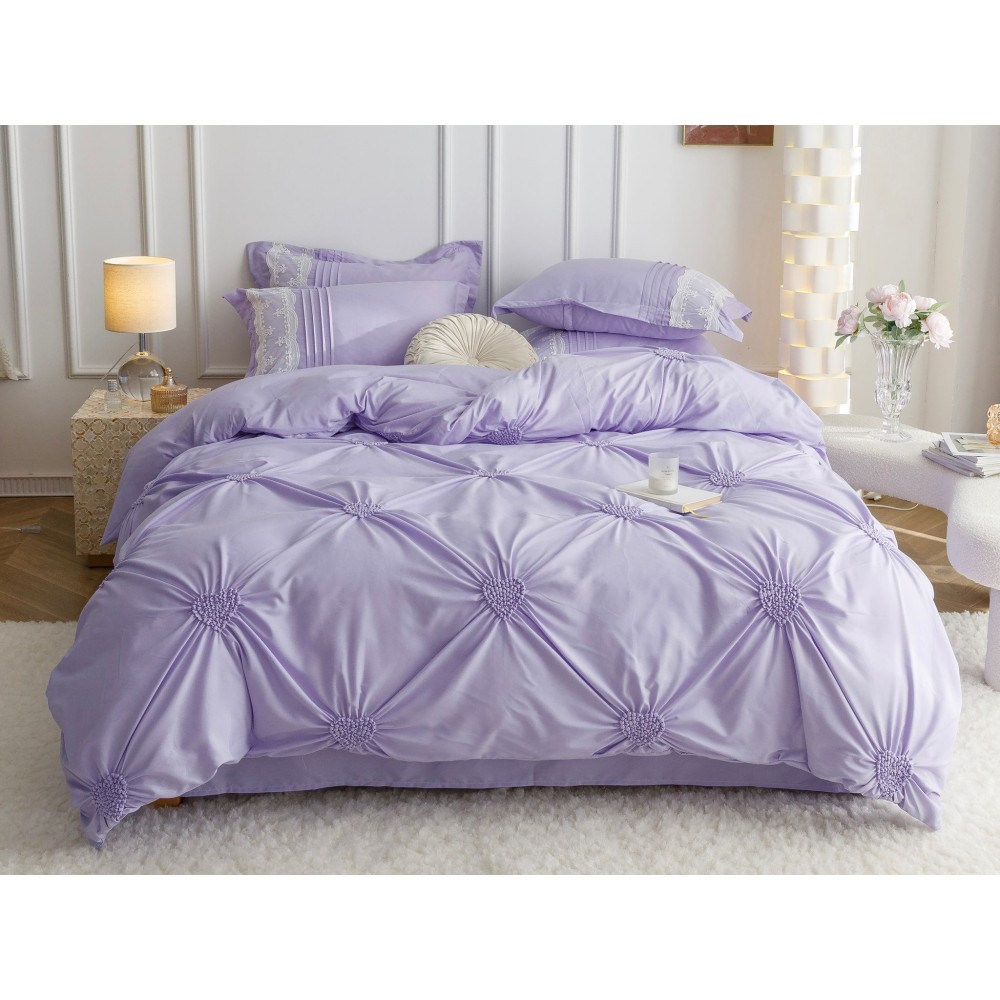 Lenjerie pat dublu, Soft Touch, 6 piese, cu PLIURI BRODATE, Jojo Home, Lila, cod produs: JOP107