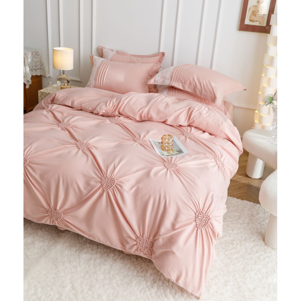 Pliurile sunt realizate prin broderie de inalta calitate, pe partea superioara a cearsafului de pilota si pe partea superioara a fetelor de perna. Interiorul acestora, si cearsaful de pat sunt simple si nu prezinta pliuri, pentru a nu incomoda pe parcursul noptii.
