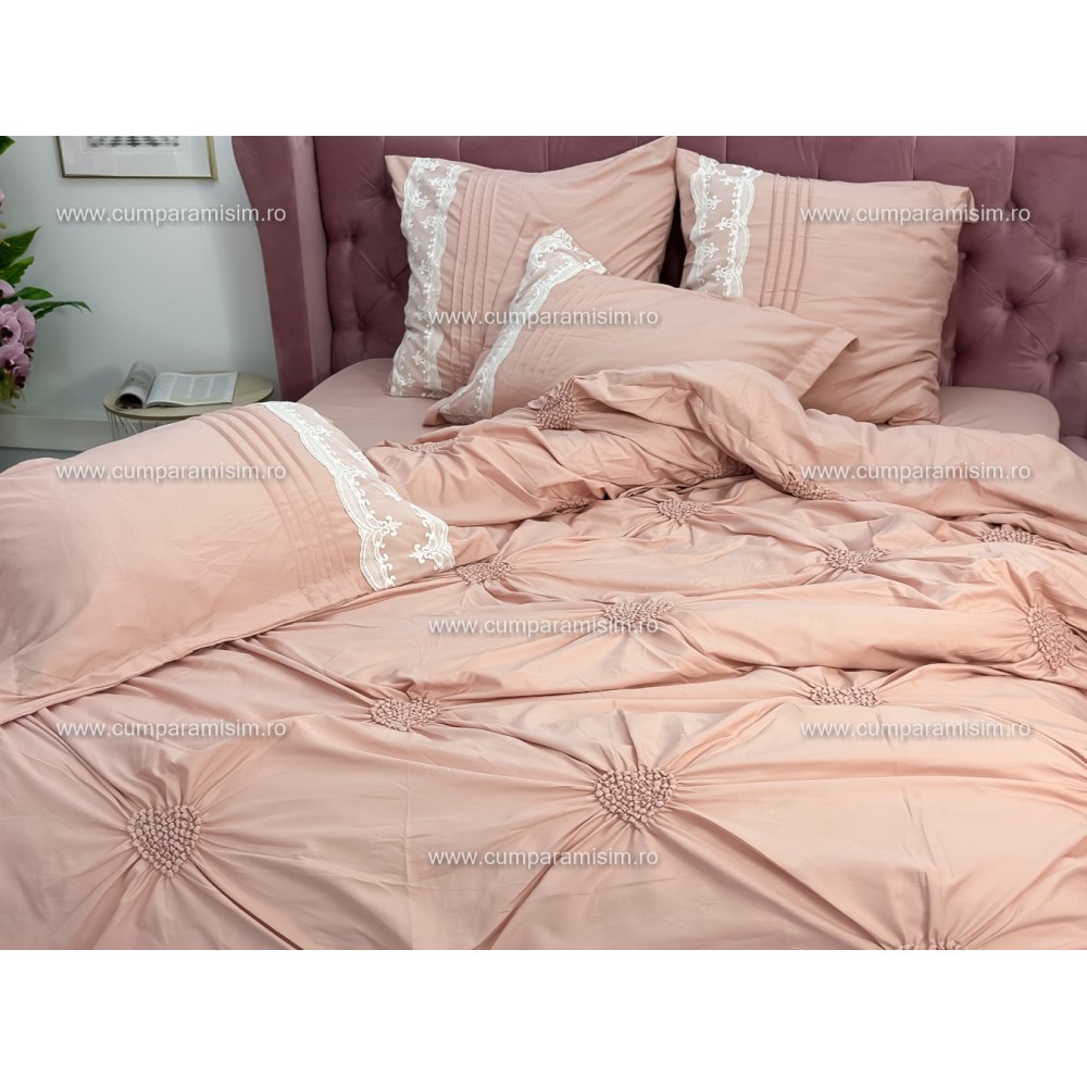 Materialul din care este confectionată lenjeria este de calitate superioara cu o textură fină, moale, foarte placută la atingere si tratat antisifonare.