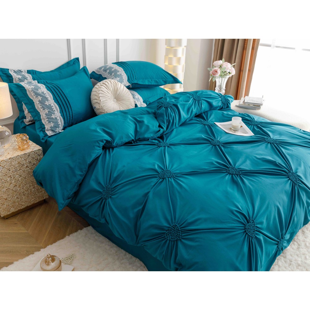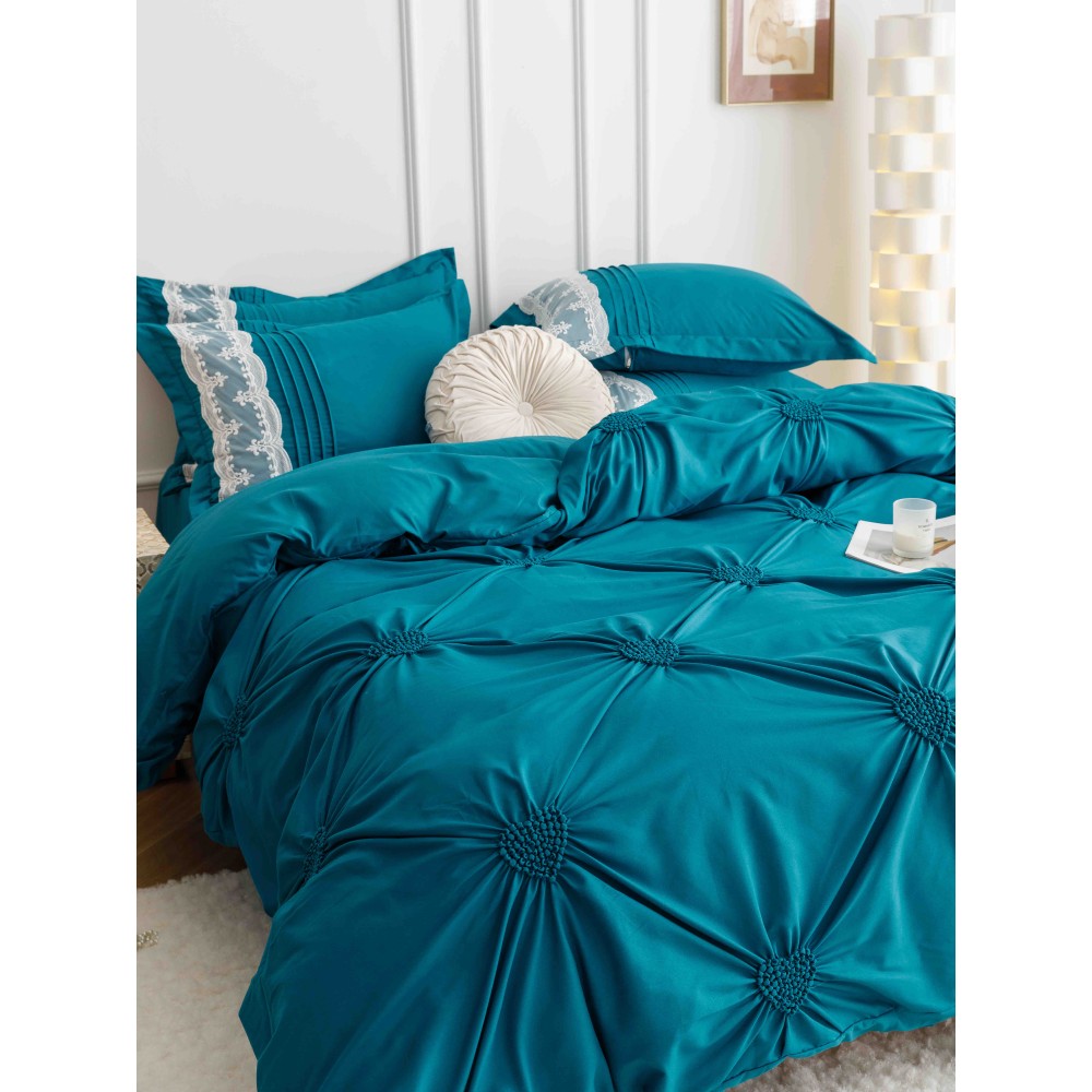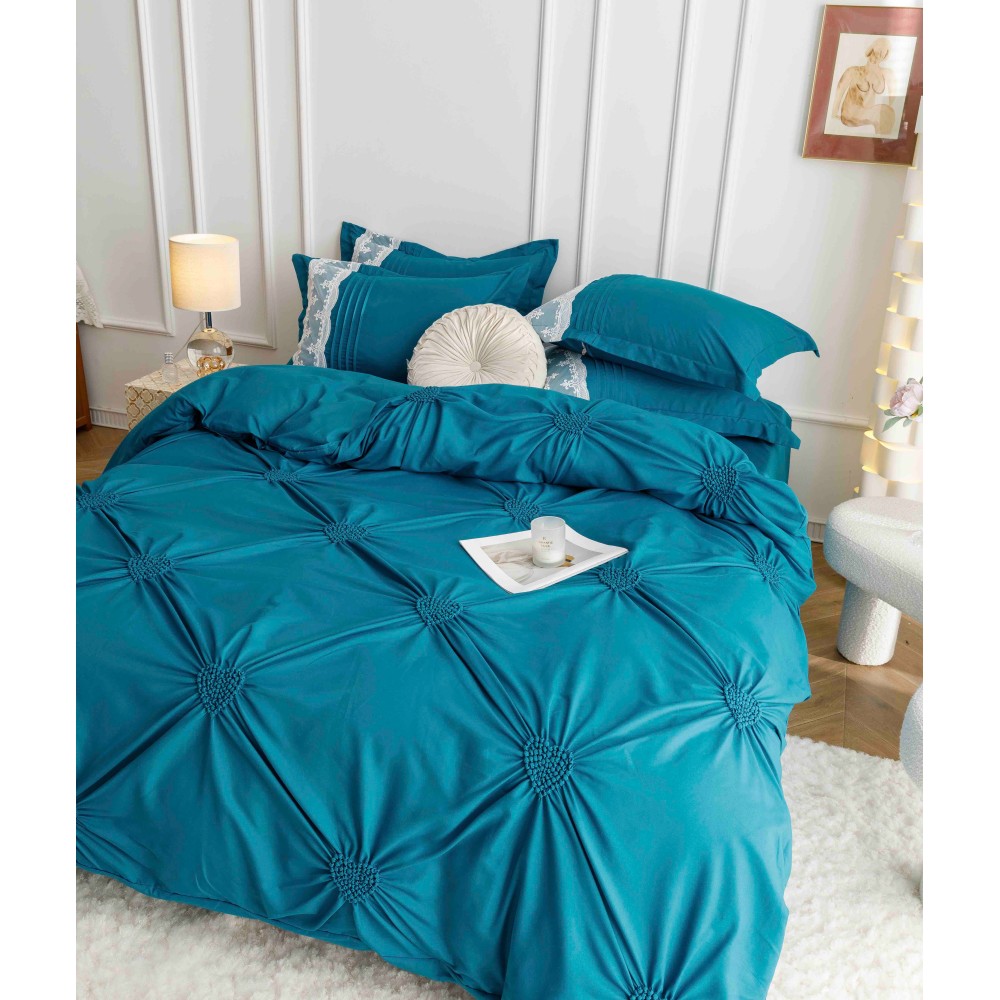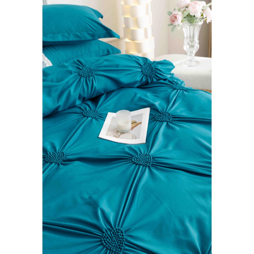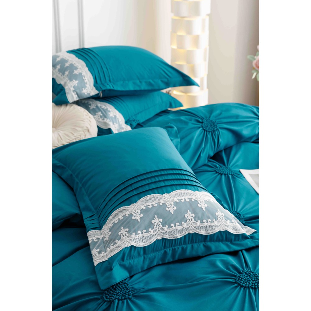 Lenjerie pat dublu, Soft Touch, 6 piese, cu PLIURI BRODATE, Jojo Home, Turquoise, cod produs: JOP114