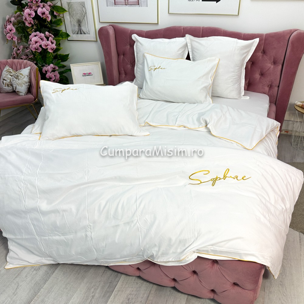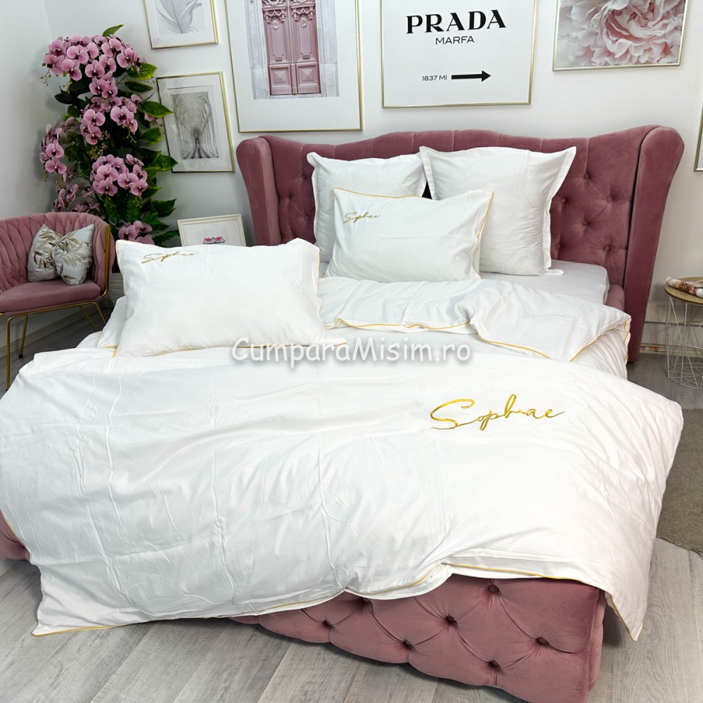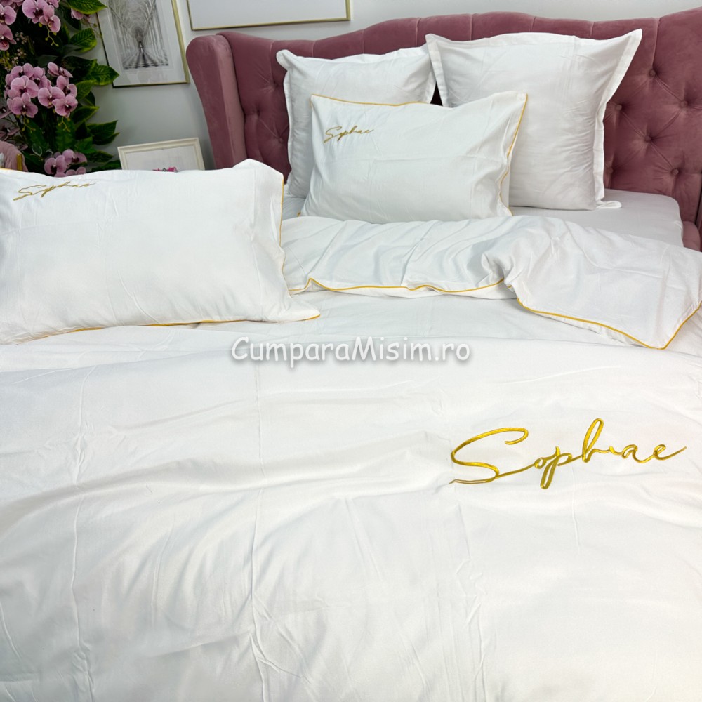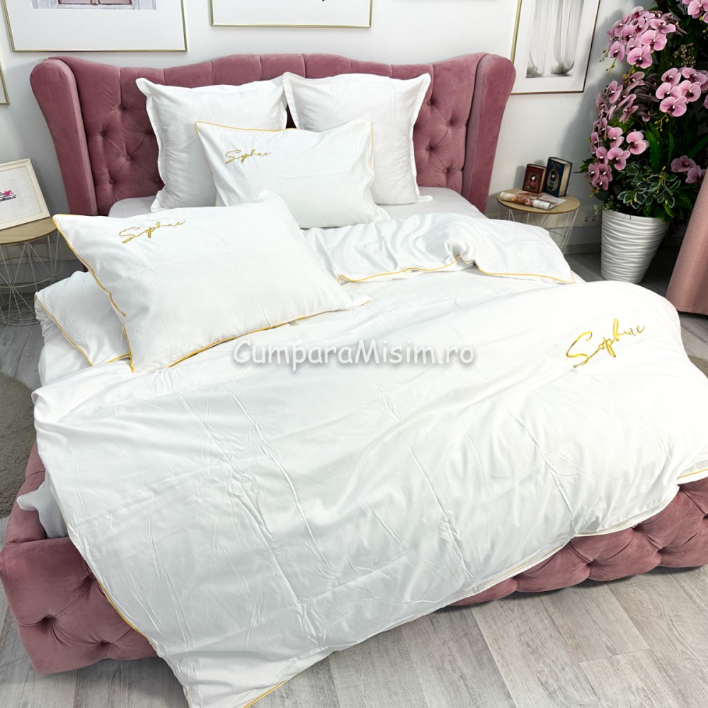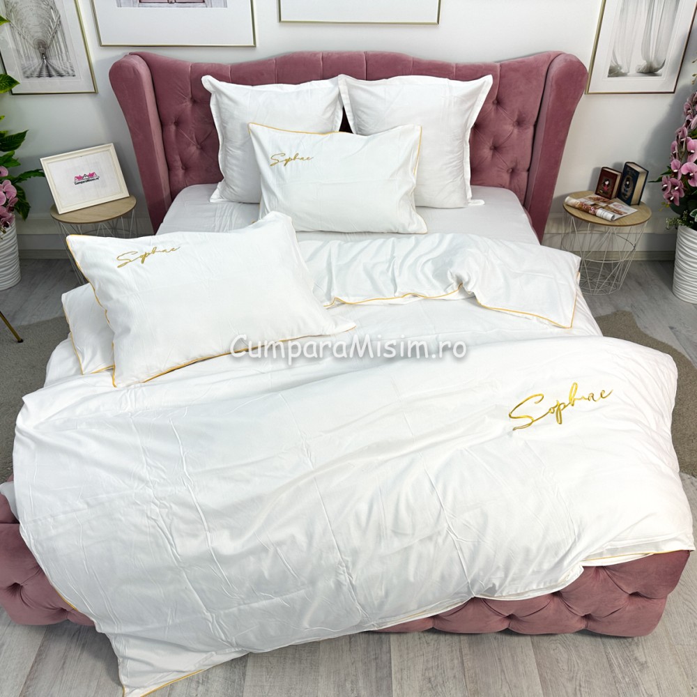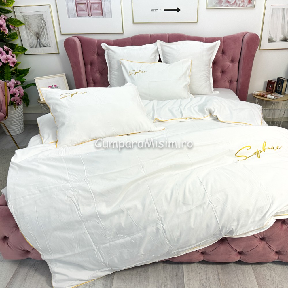 Lenjerie pat dublu cu broderie, Bumbac Satinat Deluxe, 6 piese, Alb, CumparaMisim, cod produs: SKB8