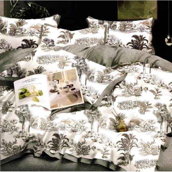Lenjerie pat dublu, bumbac satinat, cu doua feţe, 4 piese, Alb, Gri, Jungla, Casa Creativ Elegant Pucioasa, cod produs: BCC-LBS26