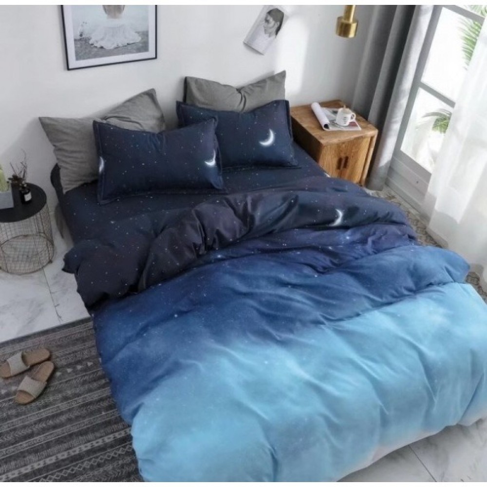 Lenjerie pat dublu, bumbac satinat, cu doua feţe, 4 piese, Bleumarin, Bleu, stele si luna, degrade, Casa Creativ Elegant Pucioasa, cod produs: BCC-LBS35