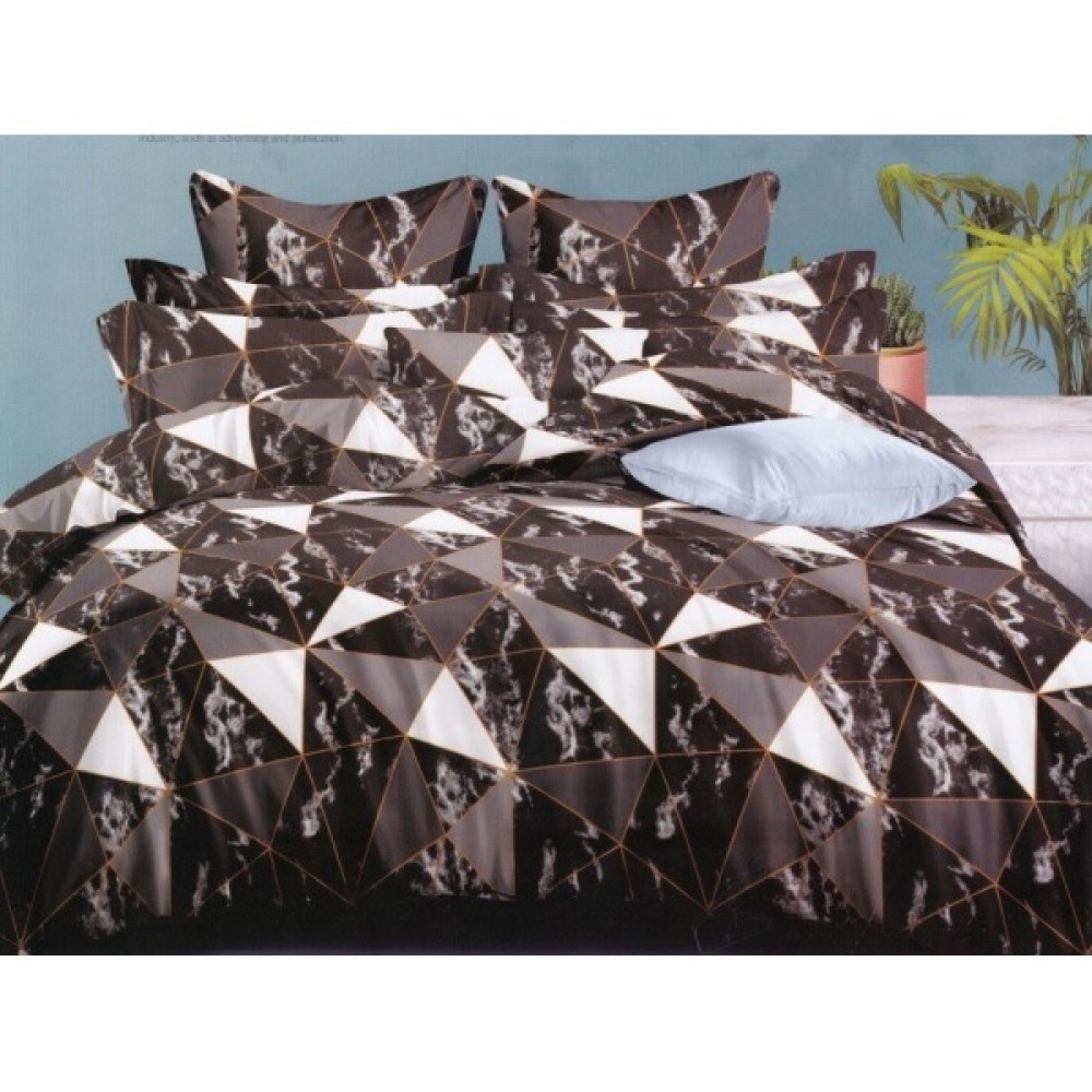 Lenjerie pat dublu, bumbac satinat, cu doua feţe, 4 piese, Vișiniu, triunghiuri, Casa Creativ Elegant Pucioasa, cod produs: BCC-LBS27