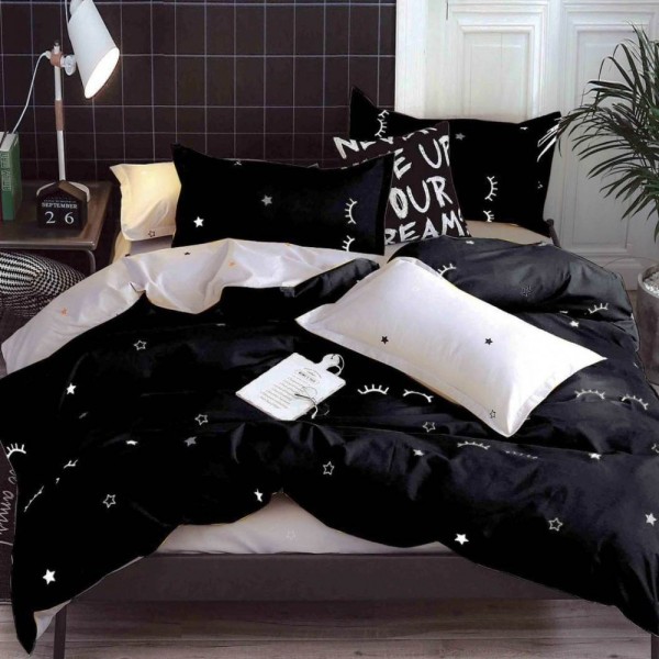 Lenjerie pat dublu cu doua feţe, bumbac satinat, 4 piese, Negru, gene, Johny Home Pucioasa, cod produs: SPR-A50-564