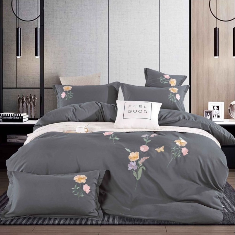 Lenjerie de Pat Dublu cu Elastic, Bumbac Satinat Deluxe, 4 Piese, Gri - Moale, Rezistentă, Ușor de Întreținut, CumparaMisim, cod produs: PRM-XH014
