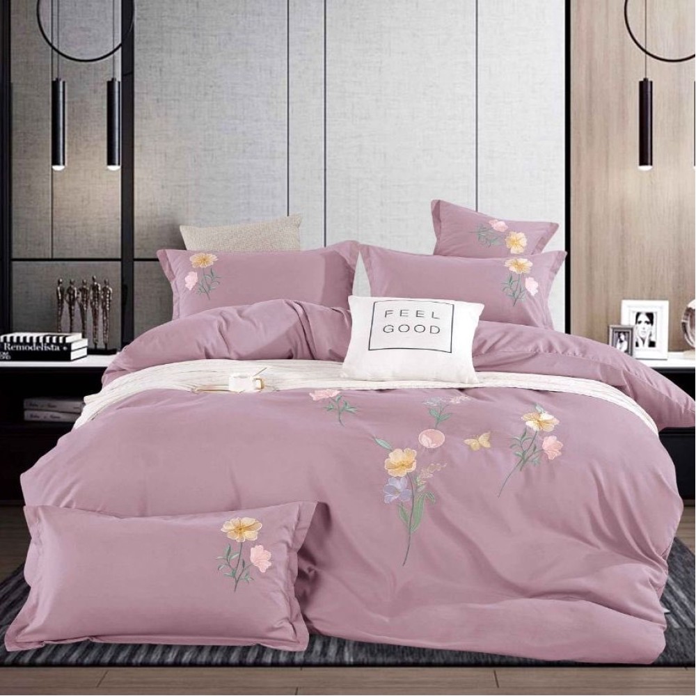 Lenjerie de Pat Dublu cu Elastic, Bumbac Satinat Deluxe, 4 Piese, Roz Pudra - Moale, Rezistentă, Ușor de Întreținut, CumparaMisim, cod produs: PRM-XH012