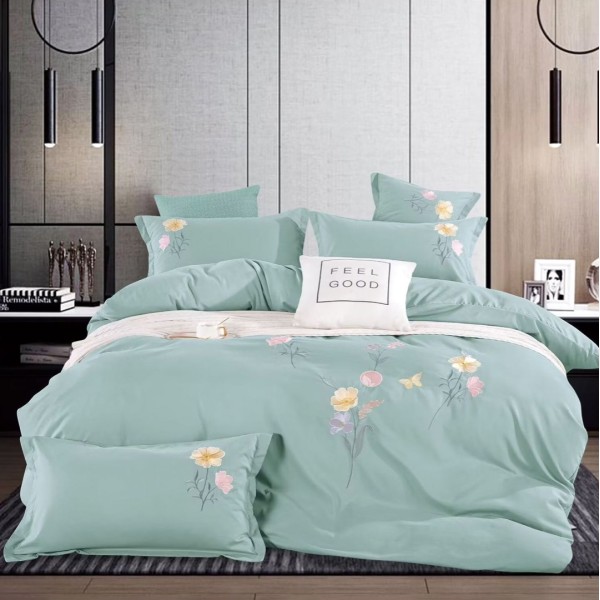 Lenjerie de Pat Dublu cu Elastic, Bumbac Satinat Deluxe, 4 Piese, Menta - Moale, Rezistentă, Ușor de Întreținut, CumparaMisim, cod produs: PRM-XH002