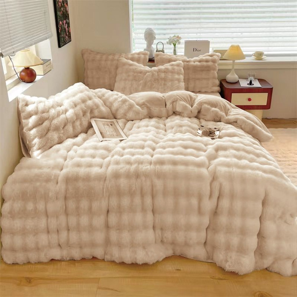 Lenjerie pat dublu, ExtraPufoasa, din Blanita artificiala de Iepure, 4 piese, Bej, CumparaMisim, cod produs: SBY5