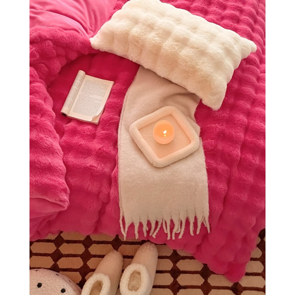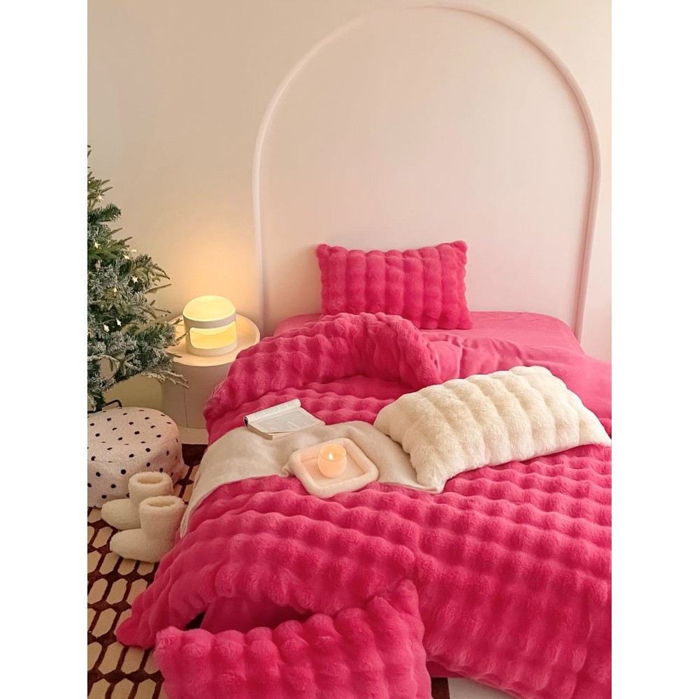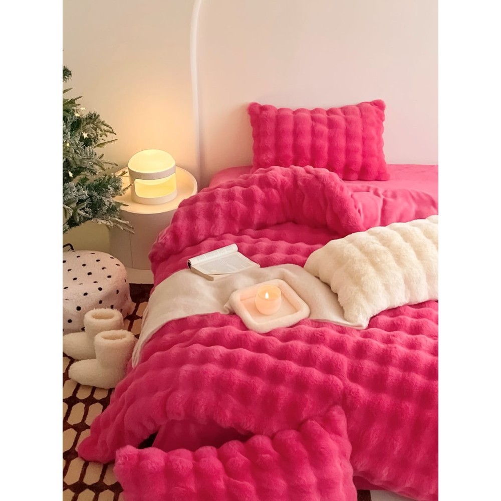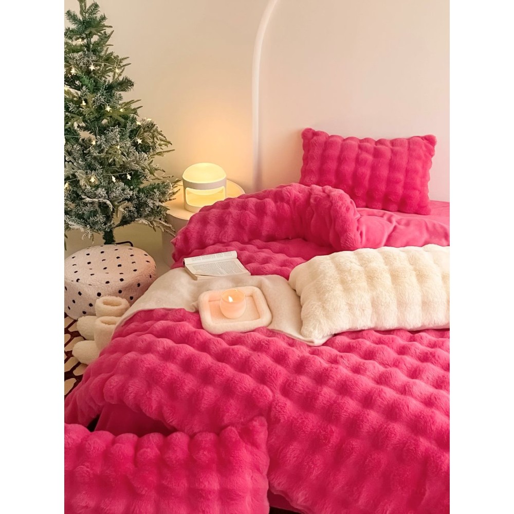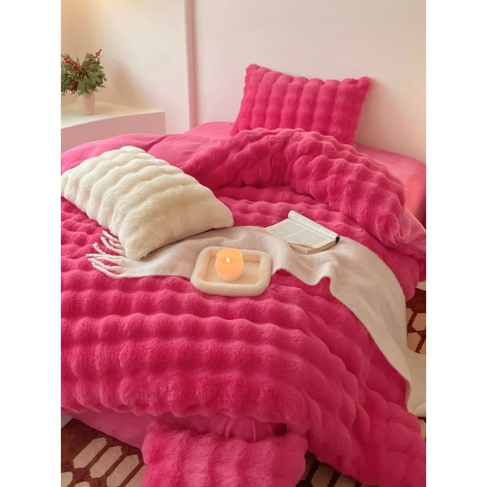Lenjerie de Pat Dublu, ExtraPufoasa din Blăniță Artificială de Iepure, 4 piese, Fuchsya – Confort Premium și Eleganță Absolută, Casa Creativ Elegant Pucioasa, cod produs: BCC-BY-05