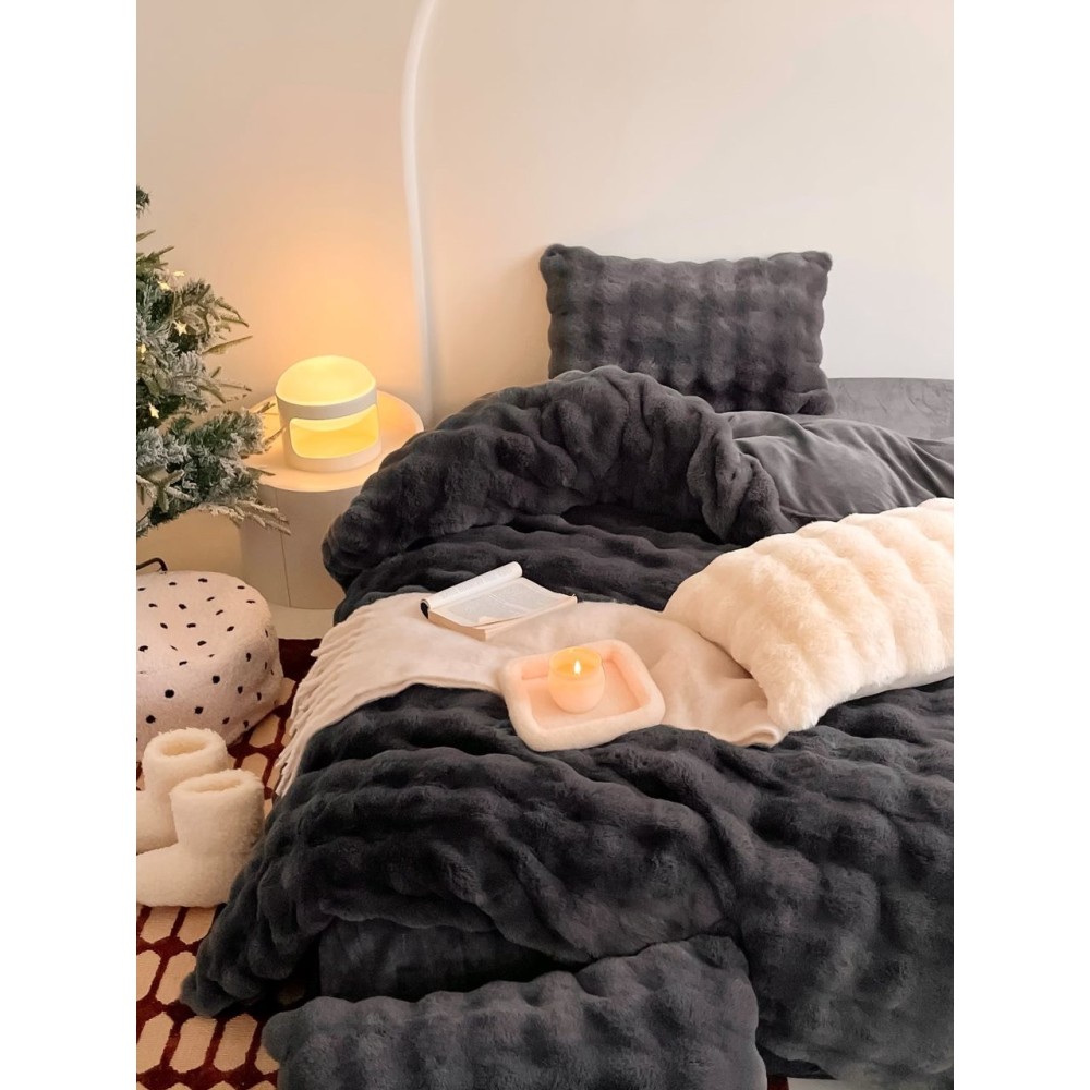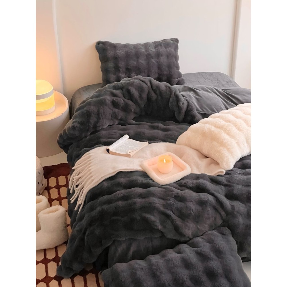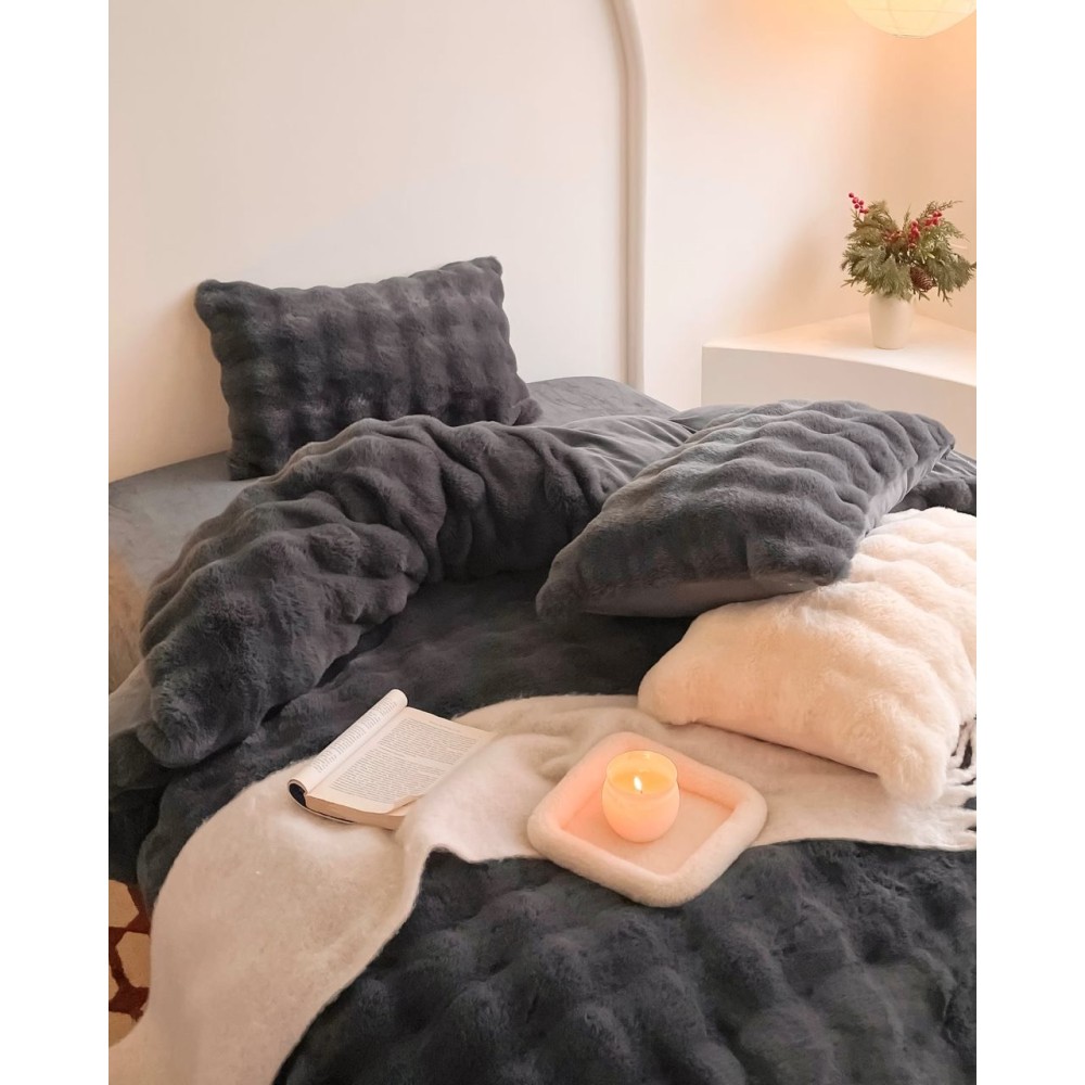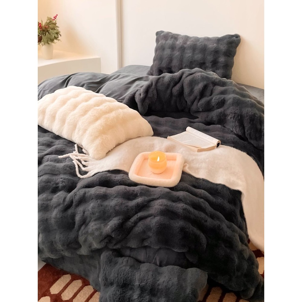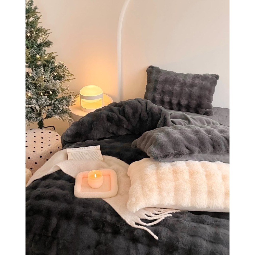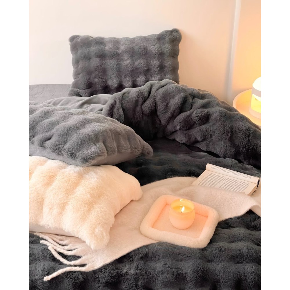 Lenjerie de Pat Dublu, ExtraPufoasa din Blăniță Artificială de Iepure, 4 piese, Gri Antracit – Confort Premium și Eleganță Absolută, Casa Creativ Elegant Pucioasa, cod produs: BCC-BY-04