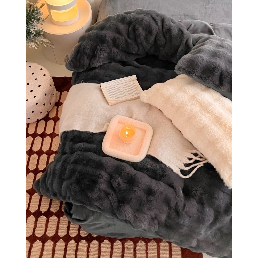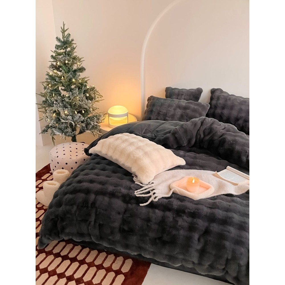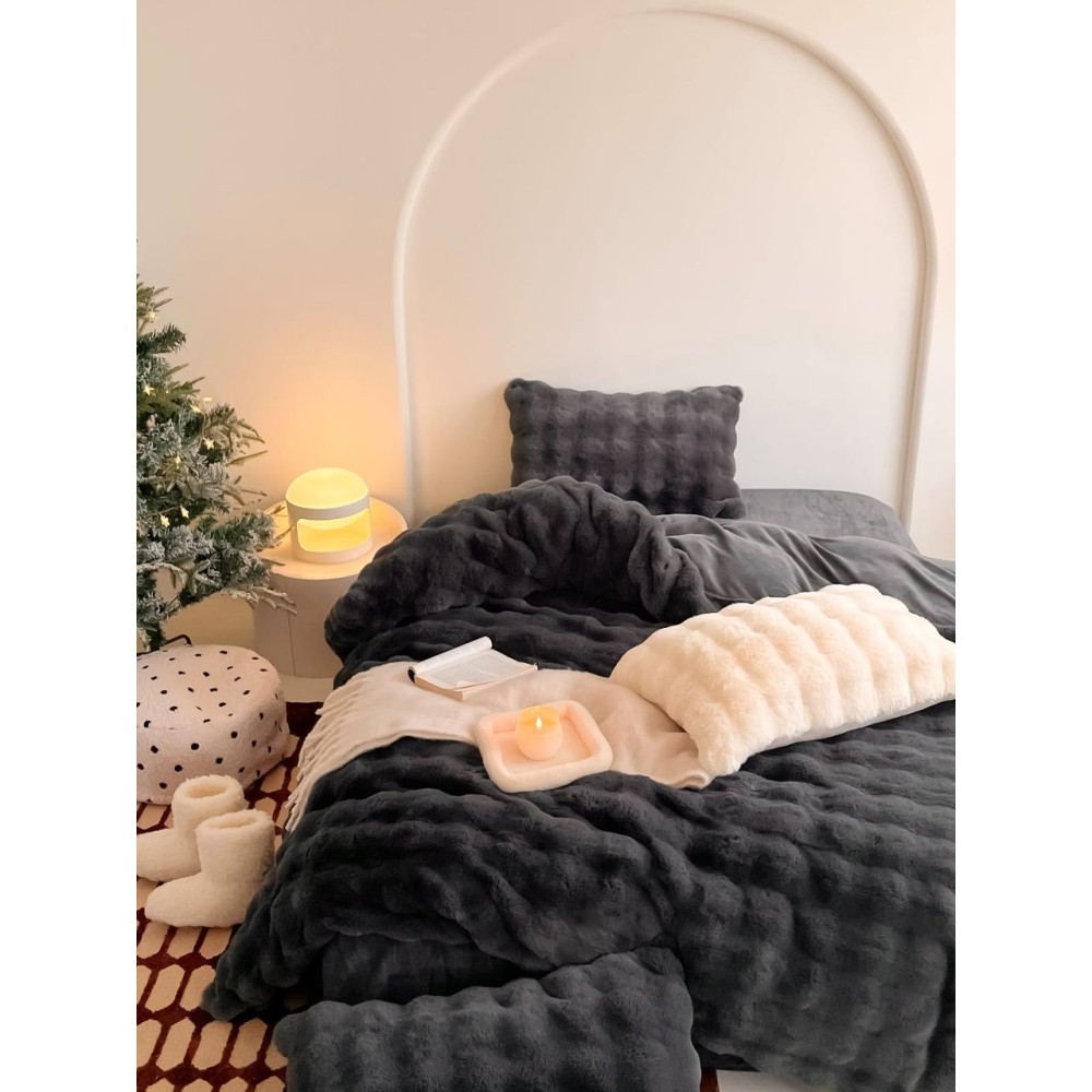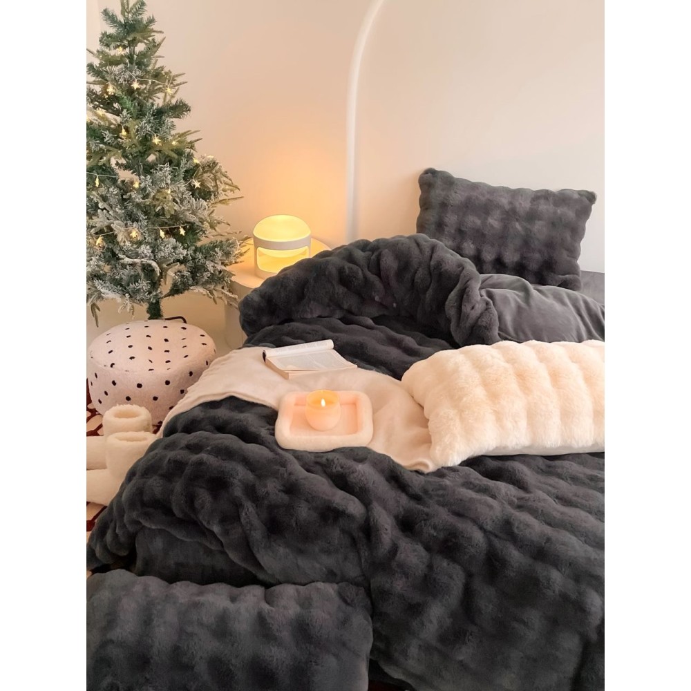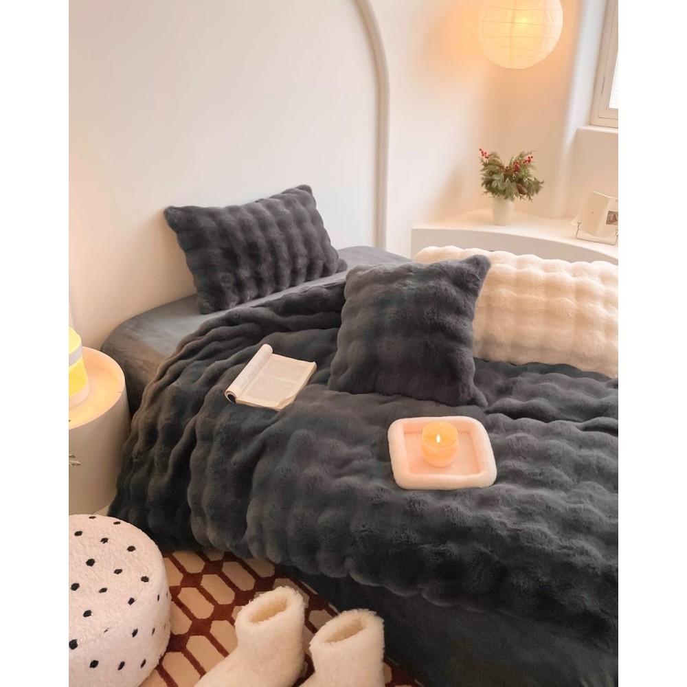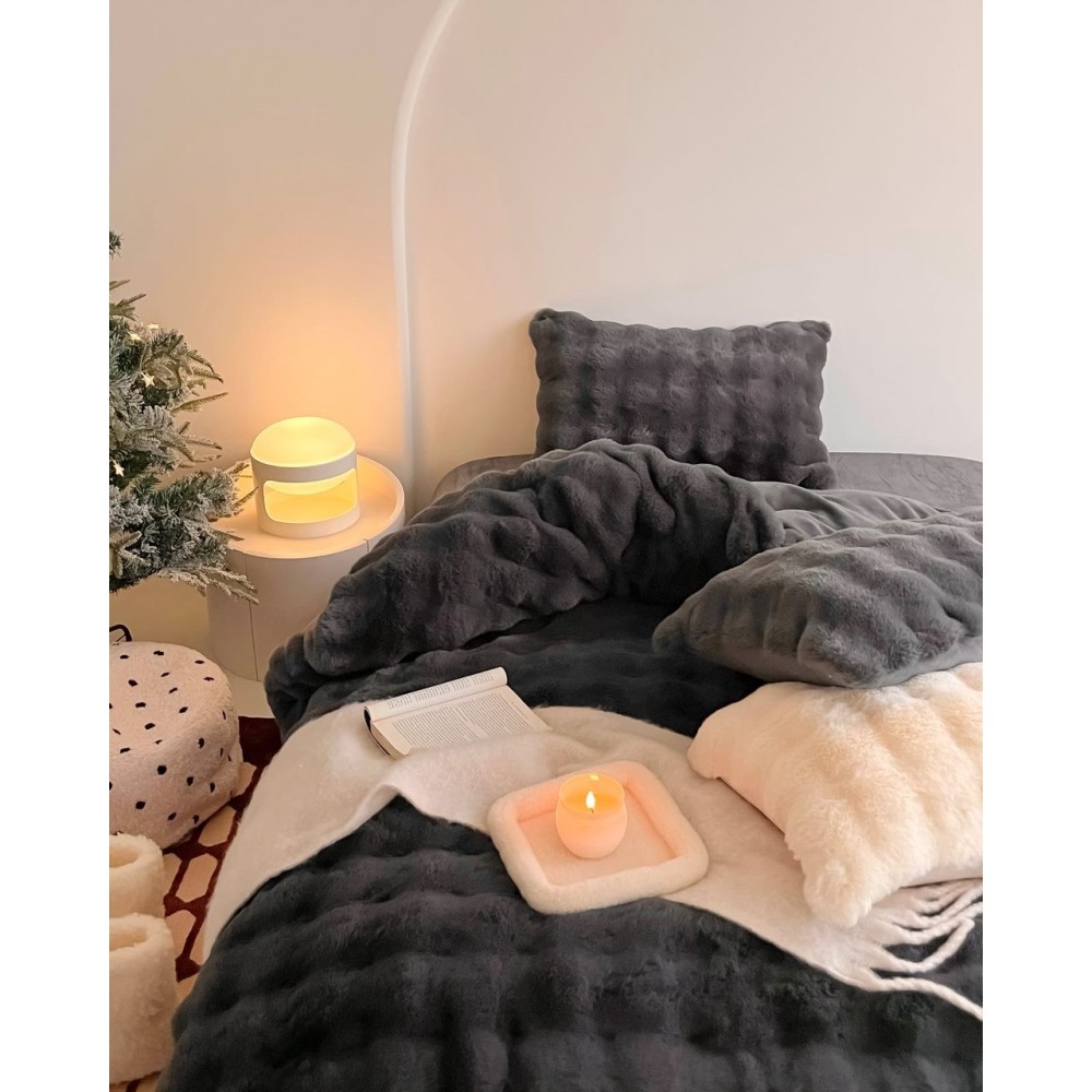 Lenjerie de Pat Dublu, ExtraPufoasa din Blăniță Artificială de Iepure, 4 piese, Gri Antracit – Confort Premium și Eleganță Absolută, Casa Creativ Elegant Pucioasa, cod produs: BCC-BY-04