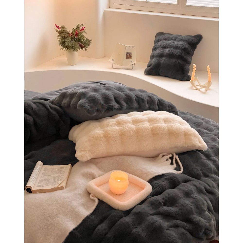 Lenjerie de Pat Dublu din Blăniță Artificială de Iepure – Răsfățul Suprem în Fiecare Noapte!
