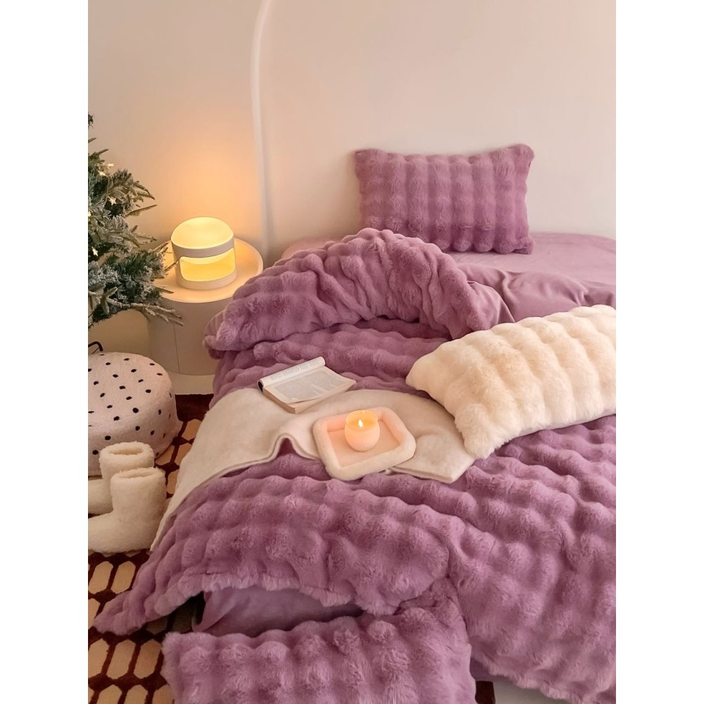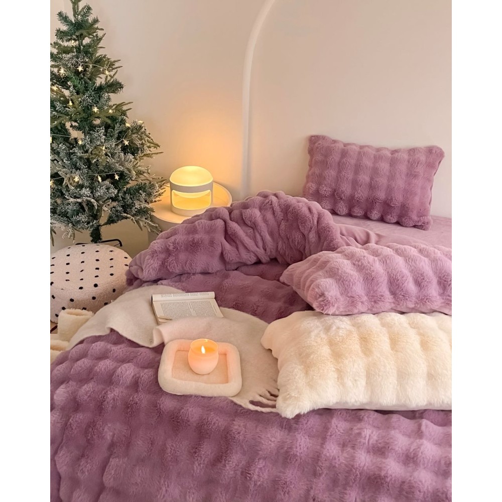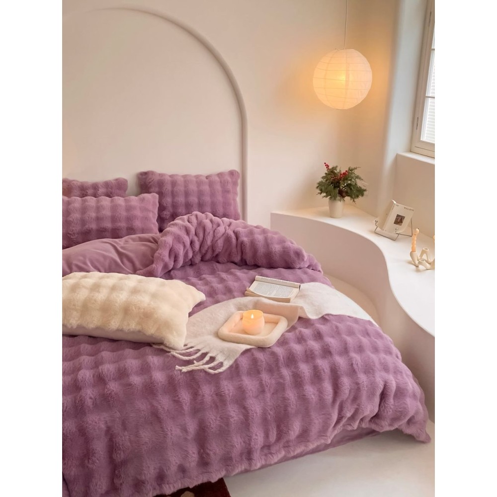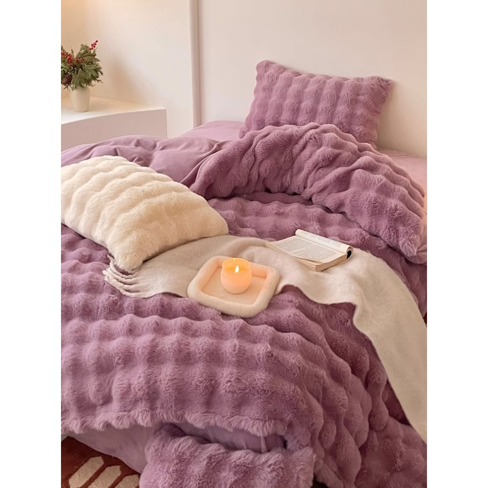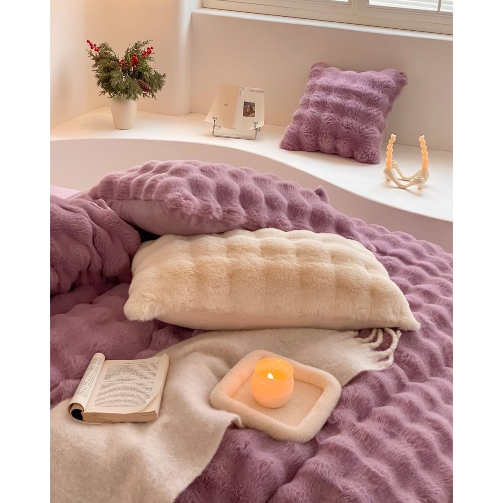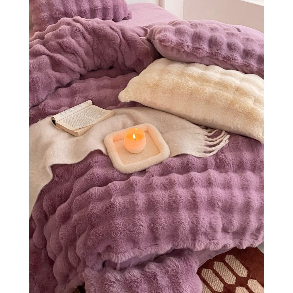 Lenjerie de Pat Dublu, ExtraPufoasa din Blăniță Artificială de Iepure, 4 piese, Mov – Confort Premium și Eleganță Absolută, Casa Creativ Elegant Pucioasa, cod produs: BCC-BY-07