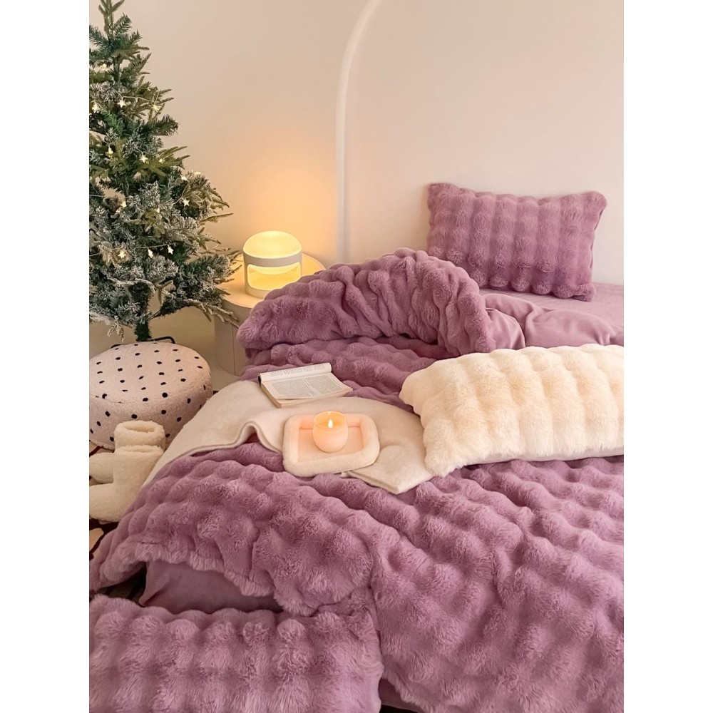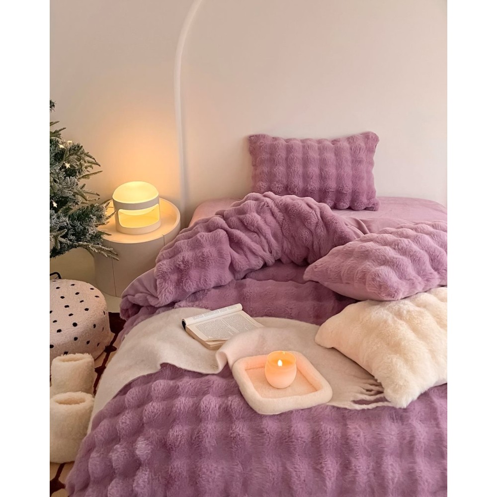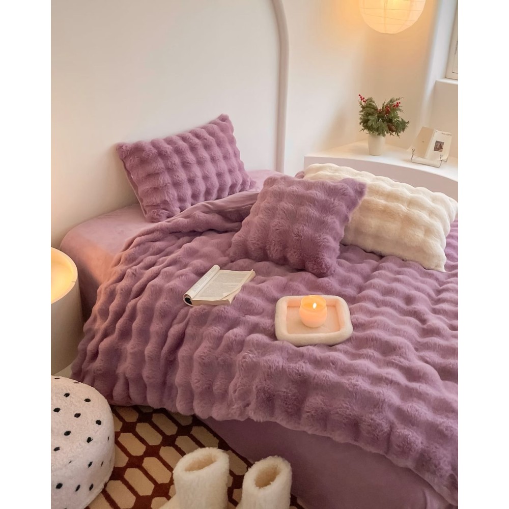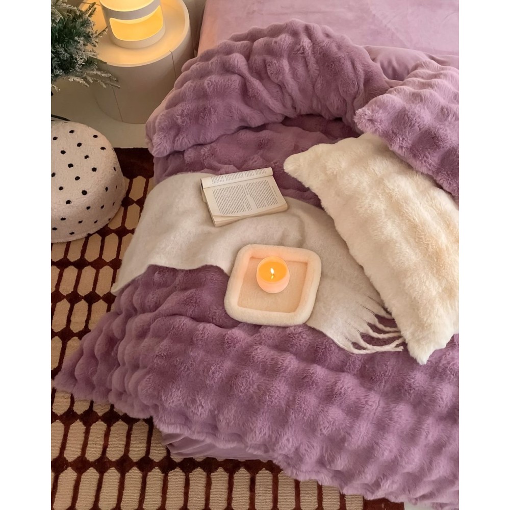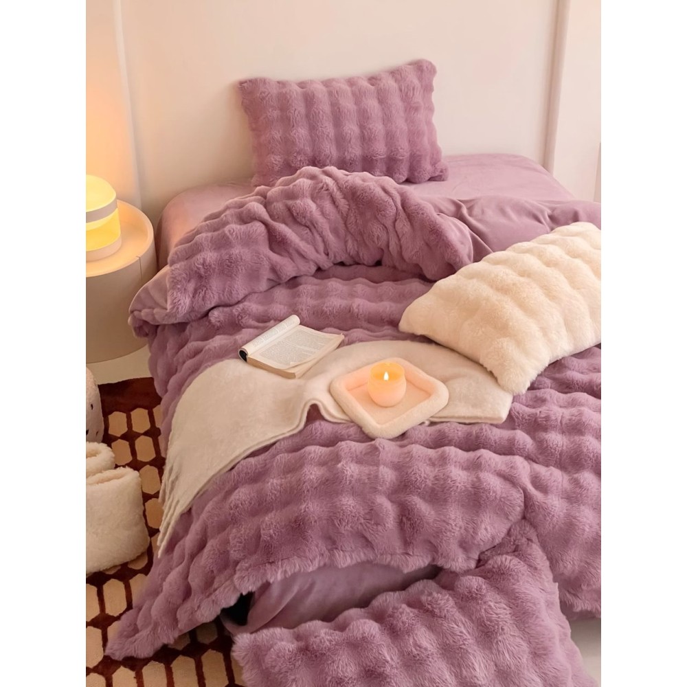 Lenjerie de Pat Dublu, ExtraPufoasa din Blăniță Artificială de Iepure, 4 piese, Mov – Confort Premium și Eleganță Absolută, Casa Creativ Elegant Pucioasa, cod produs: BCC-BY-07