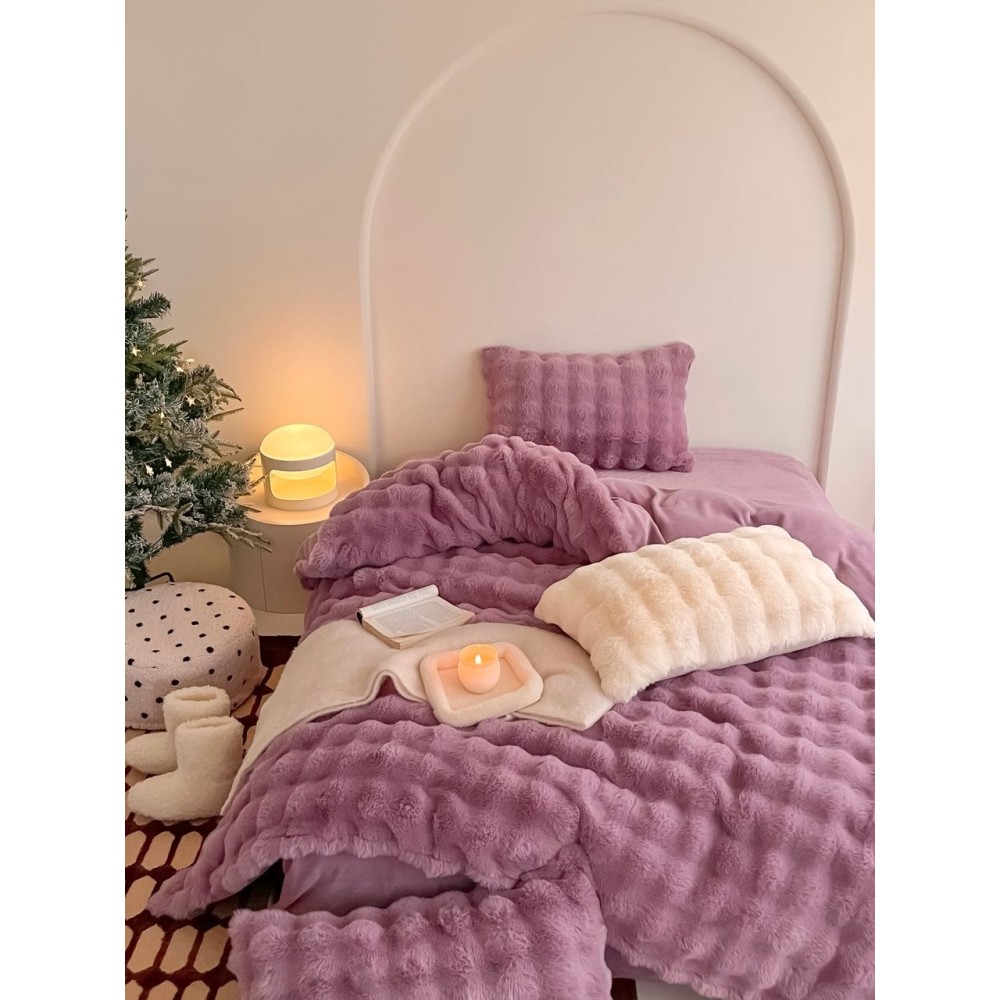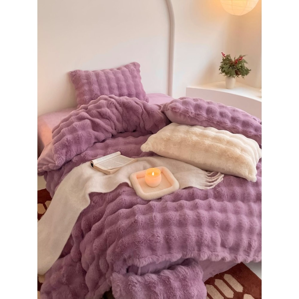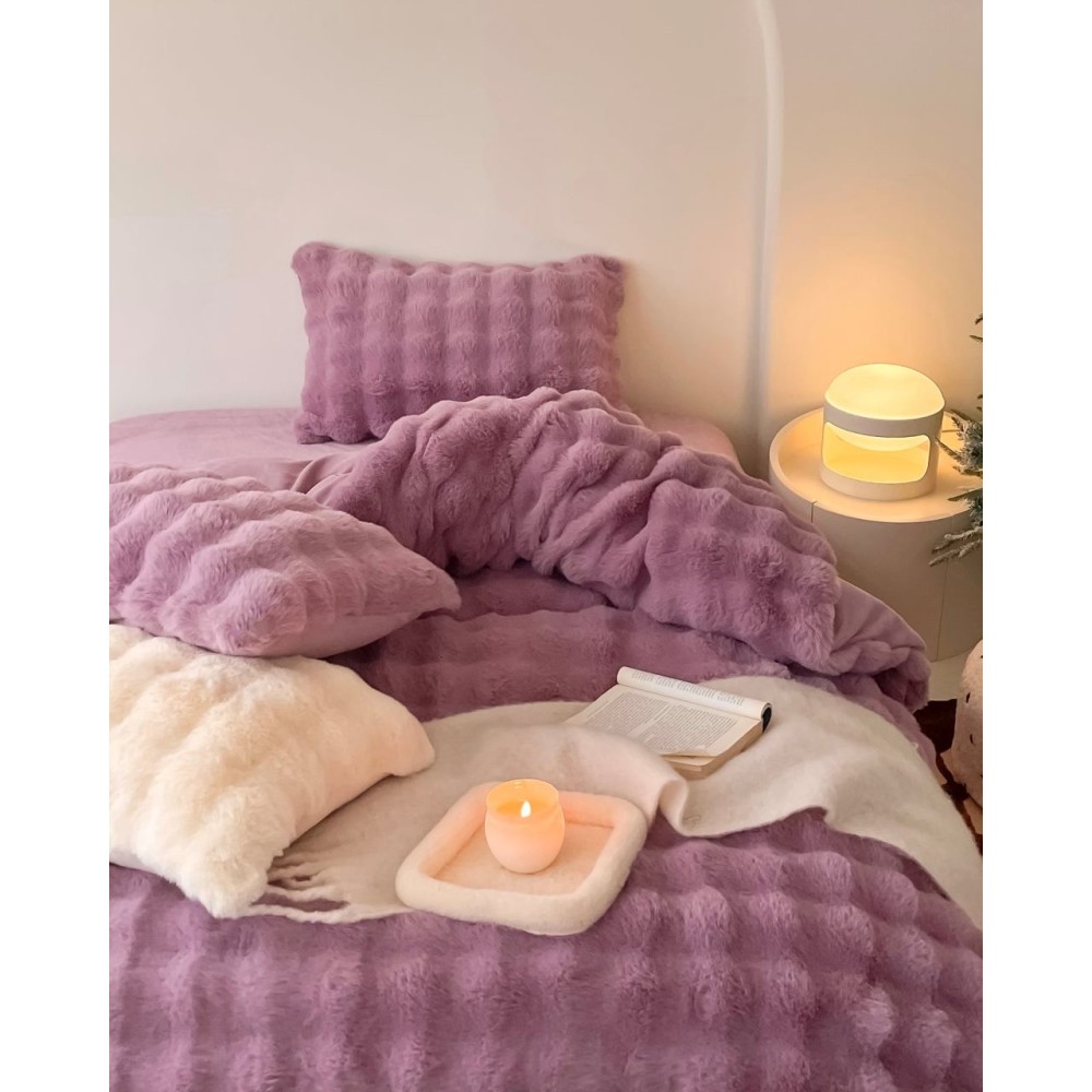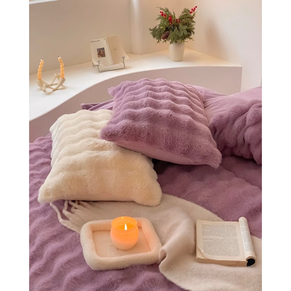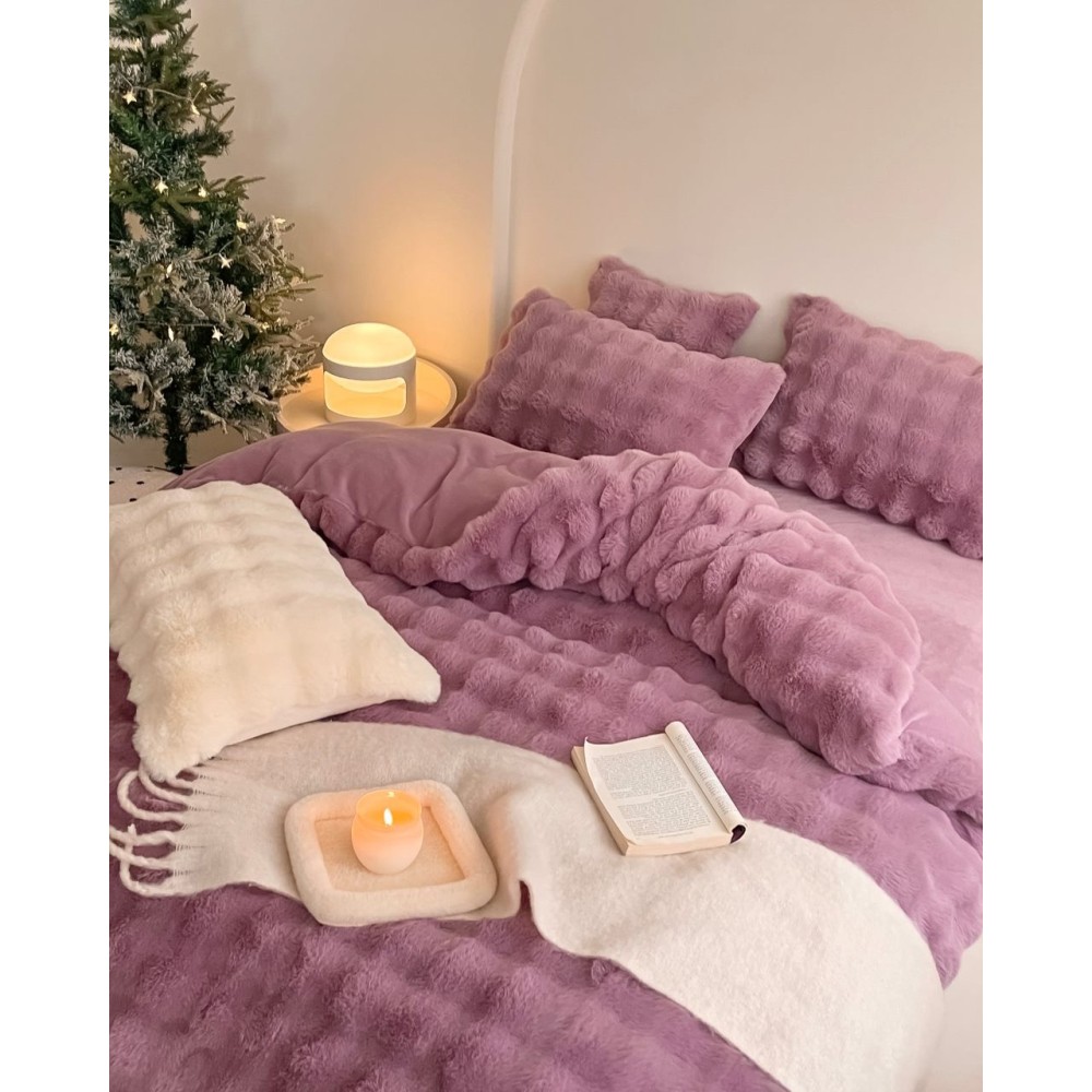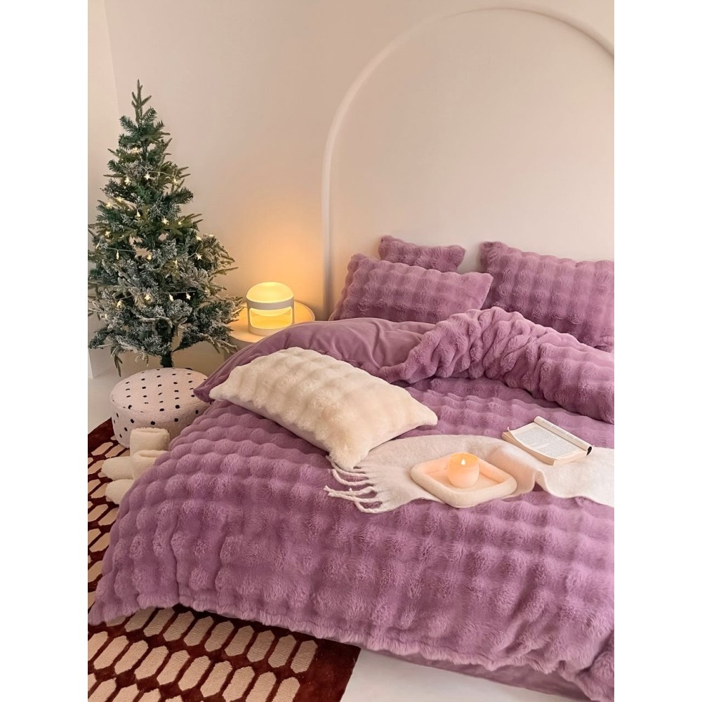 Lenjerie de Pat Dublu, ExtraPufoasa din Blăniță Artificială de Iepure, 4 piese, Mov – Confort Premium și Eleganță Absolută, Casa Creativ Elegant Pucioasa, cod produs: BCC-BY-07