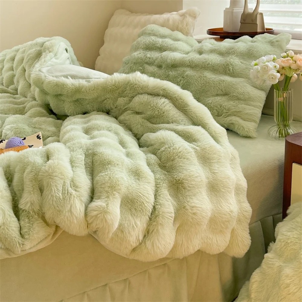 Deosebit de calduroase, aceste lenjerii sunt alegerea perfectă pentru cei care apreciază detaliile fine și confortul suprem în dormitor. Fie că doriți să vă răsfățați cu un somn regenerant sau să adăugați un strop de lux în decorul dormitorului, aceste lenjerii din blăniță artificială de iepure sunt soluția ideală.