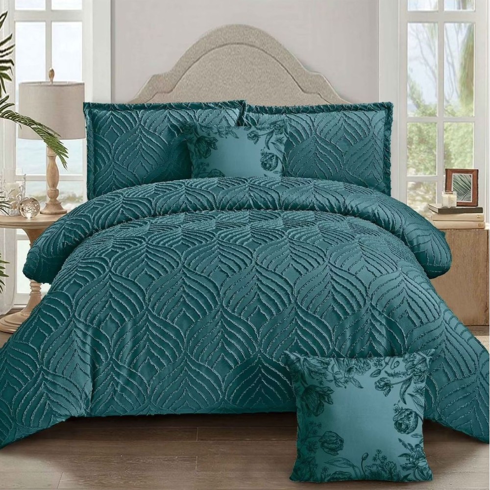 Lenjerie de pat dublu din finet satinat, 4 anotimpuri, cu smocuri brodate (tesatura din fabrica, ci nu imprimata, cu inaltime de 1 cm), confectionata din bumbac 100%, cu 6 piese. Materialul are un aspect lucios, cu smocuri brodate in relief, pentru o nota de eleganta si rafinament, facand astfel tesatura speciala atat prin calitate cat si prin design-ul sau unic.