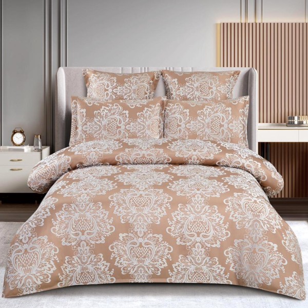 Lenjerie pat dublu, JACQUARD FINETAT, 6 piese, cu ELASTIC, Bej, CumparaMisim, cod produs: SPR-T3-11