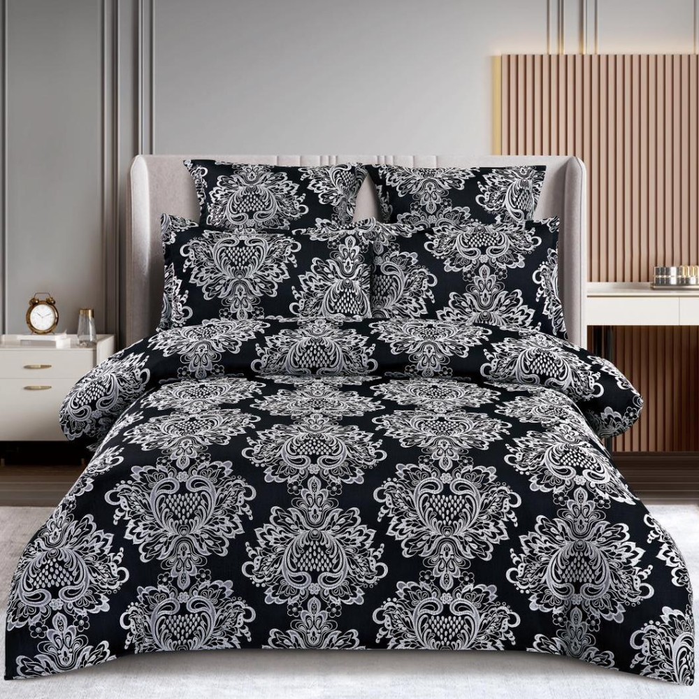 Lenjerie pat dublu, JACQUARD FINETAT, 6 piese, cu ELASTIC, Negru, CumparaMisim, cod produs: SPR-T3-13
