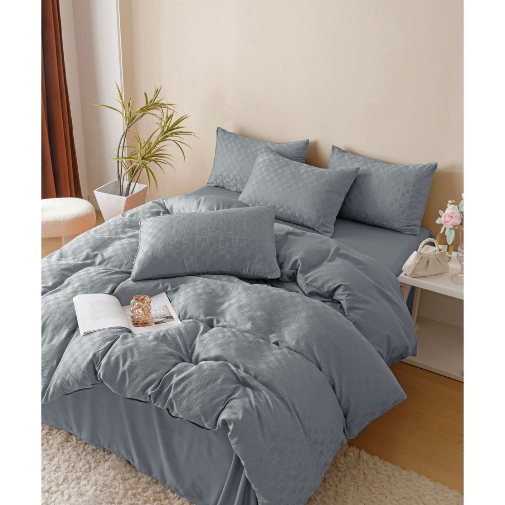 Lenjerie pat dublu, JACQUARD FINETAT, 6 piese, Jojo Home, Gri deschis, cod produs: JOU111