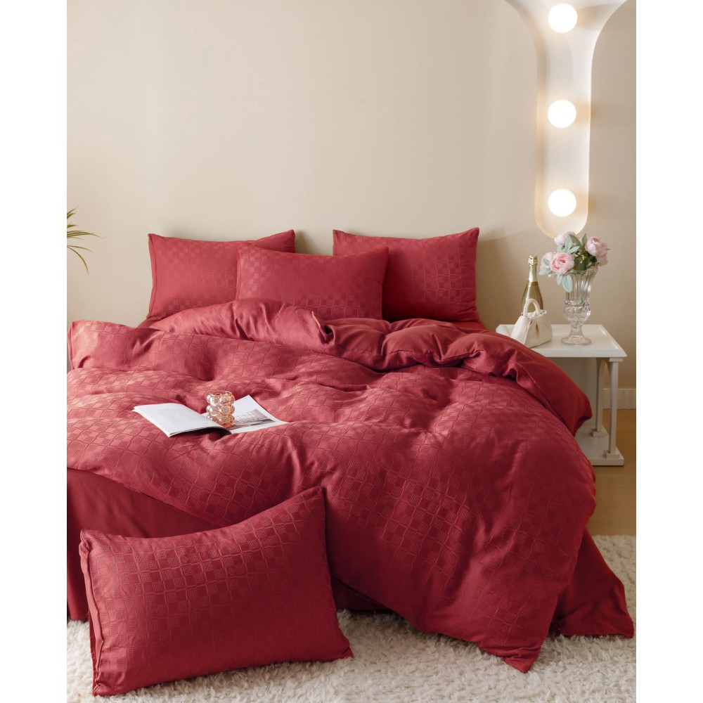 Lenjerie pat dublu, JACQUARD FINETAT, 6 piese, Jojo Home, Rosu, cod produs: JOU107