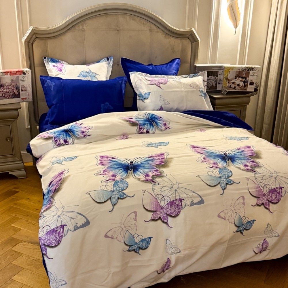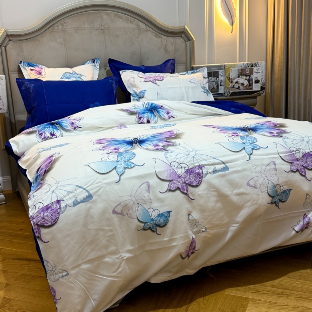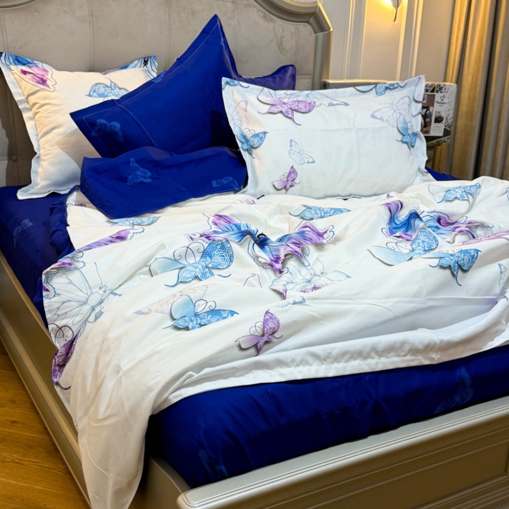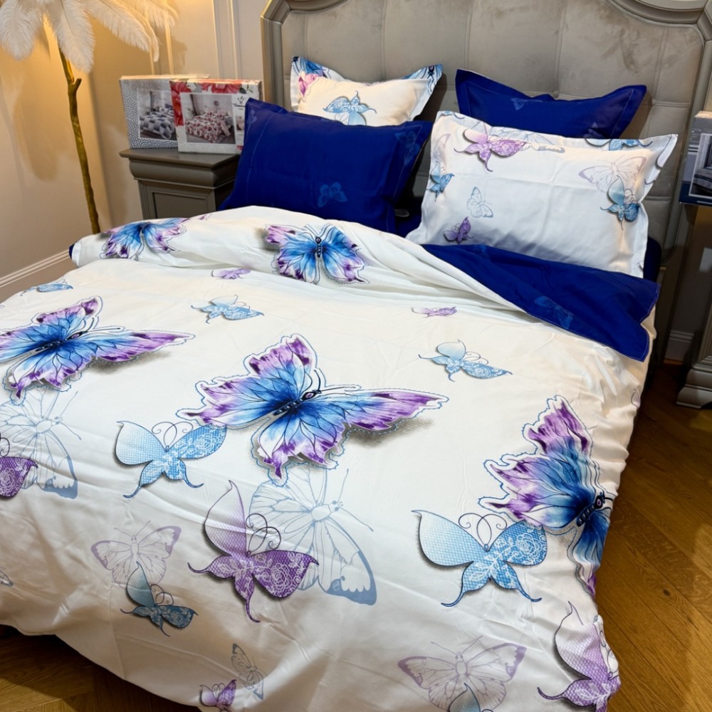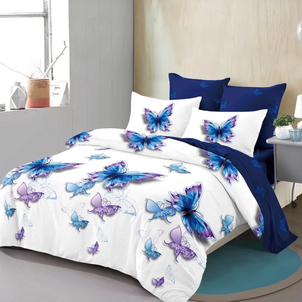 Lenjerie Pat Dublu, FINET, 6 piese, Alb, Albastru, Fluturi, Primavara Casa, cod produs: PRM-FN-A689