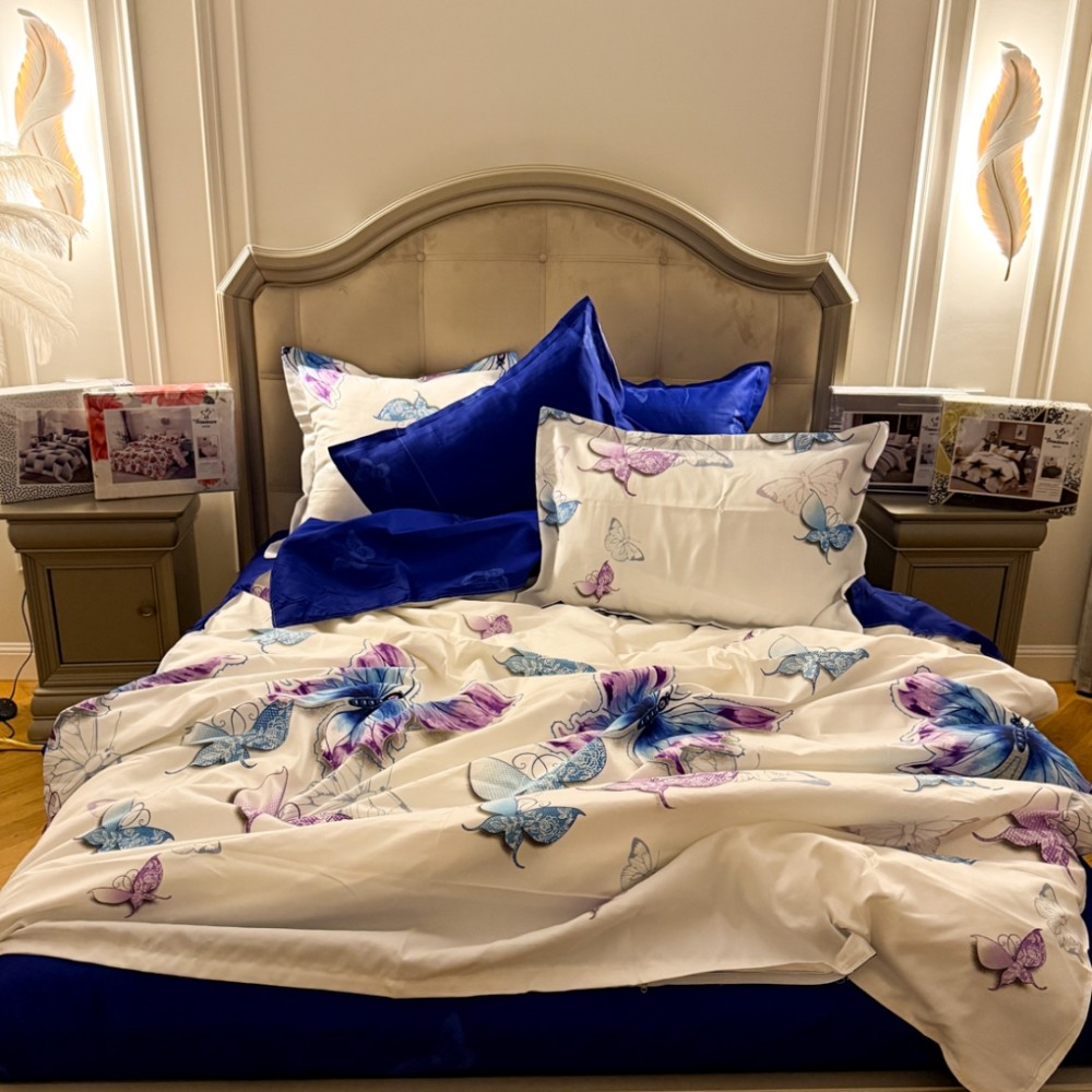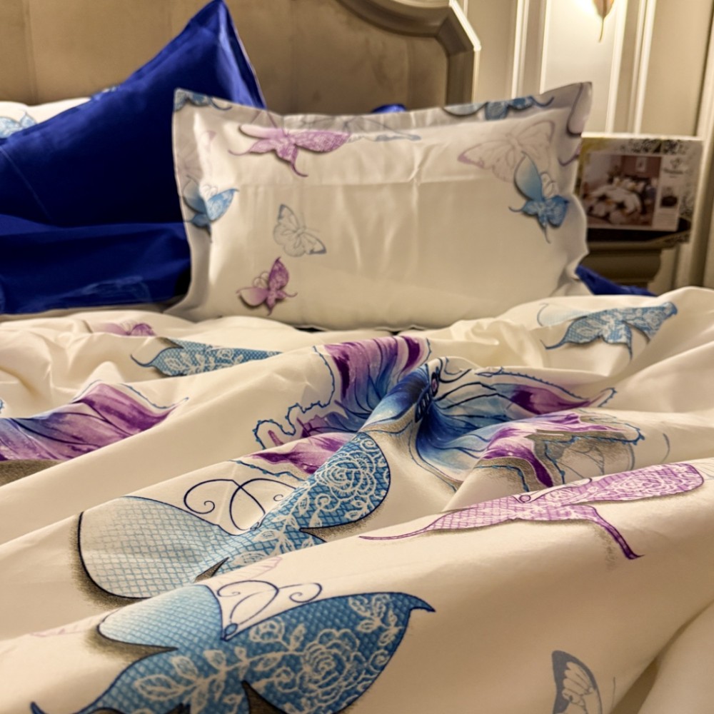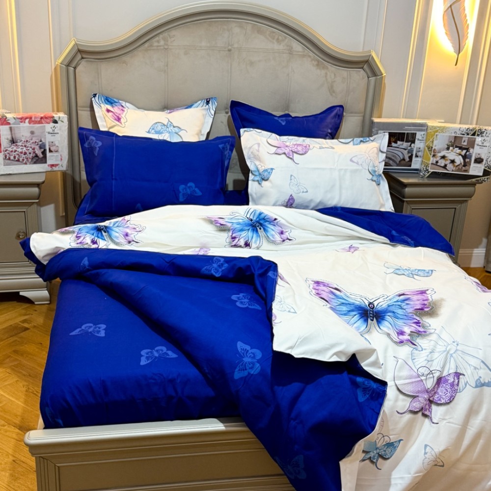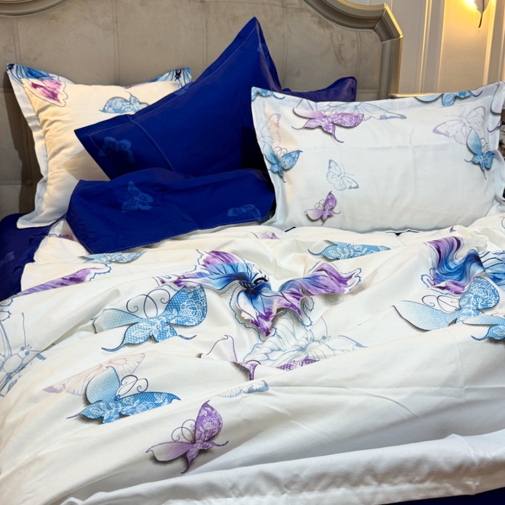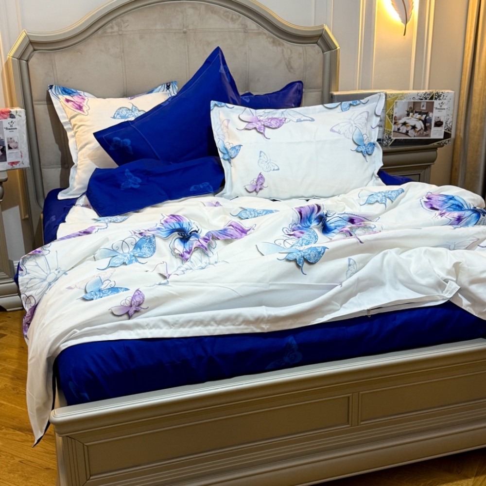 Lenjerie Pat Dublu, FINET, 6 piese, Alb, Albastru, Fluturi, Primavara Casa, cod produs: PRM-FN-A689